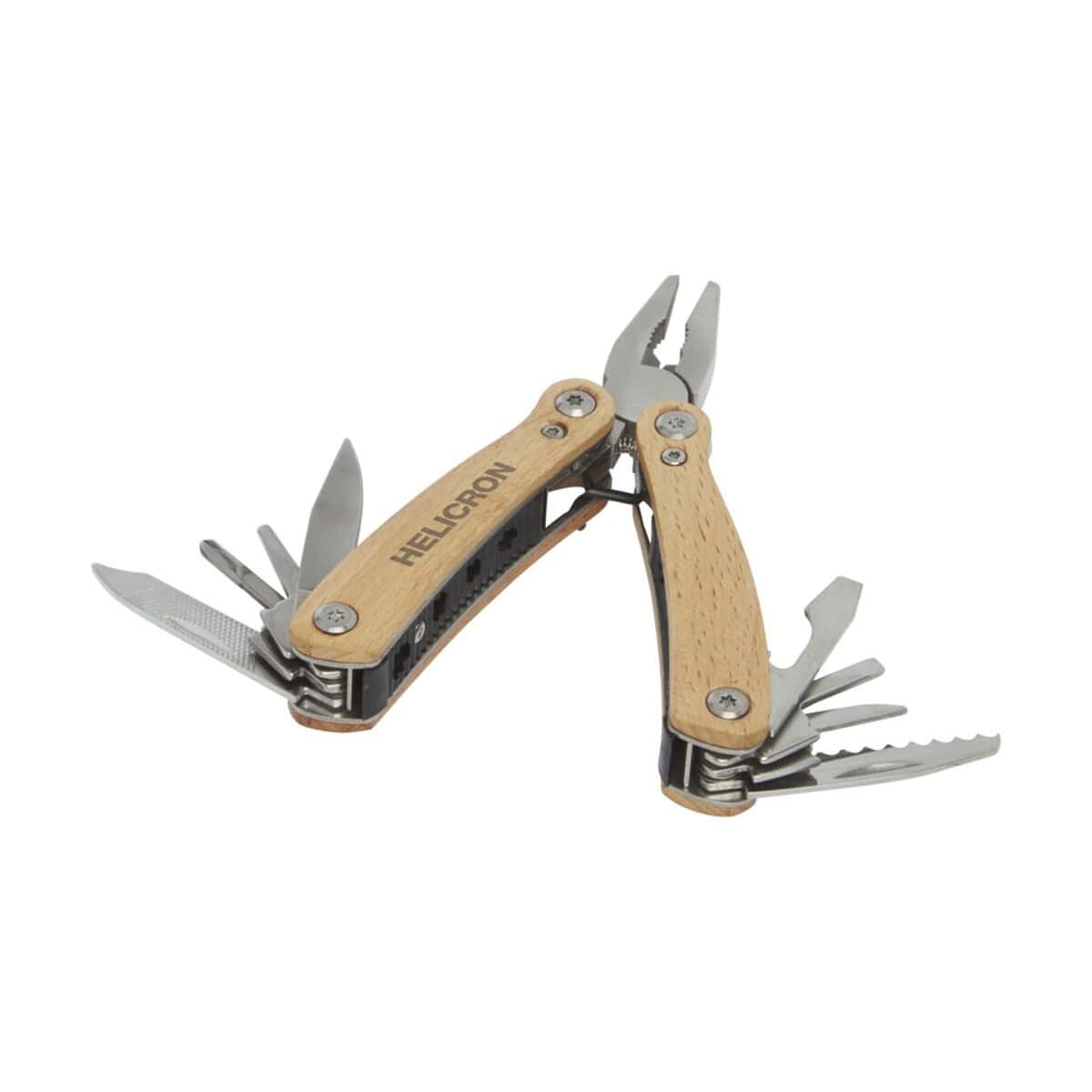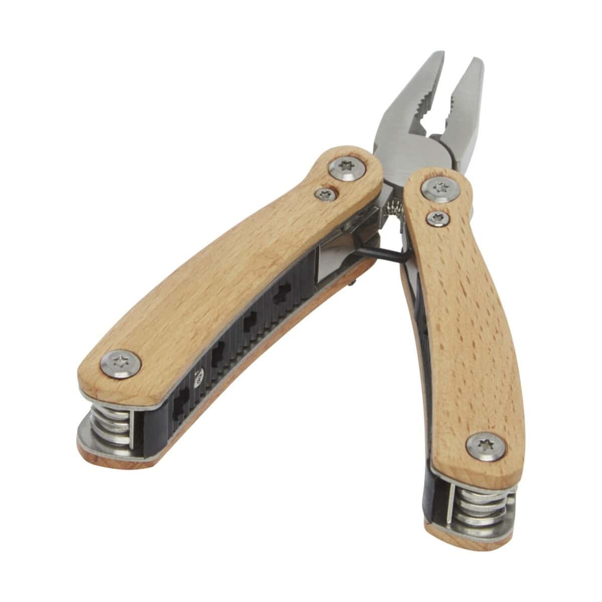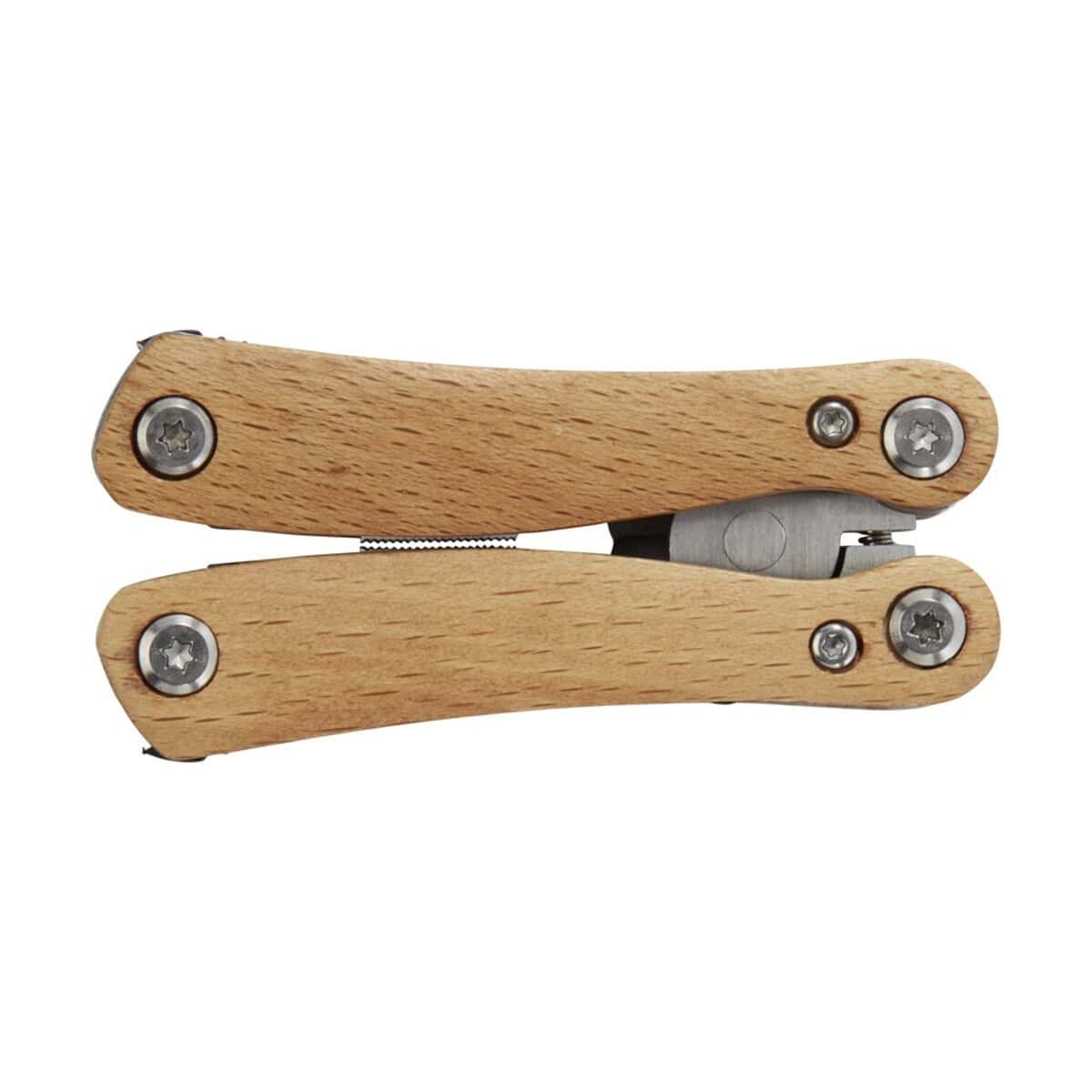W skład zestawu wchodzą m.in. duże szczypce, przecinak do drutu, dwa noże, otwieracz do butelek, trzy śrubokręty oraz pilnik. To sprawia, że 12-funkcyjne średnie drewniane narzędzie multi-tool Anderson jest znakomitym rozwiązaniem zarówno dla harcerzy i miłośników survivalu, jak i serwisantów rowerowych czy ekip remontowych. Dzięki kompaktowemu wymiarowi 9,5 × 2,5 × 5,5 cm po złożeniu oraz dołączonemu pudełku z recyklingu staje się także estetycznym upominkiem.