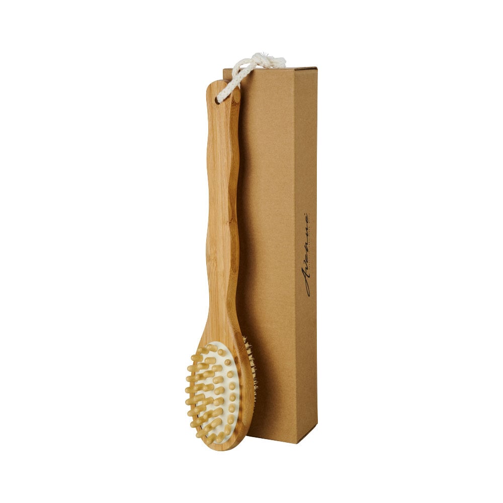 Dwustronna szczotka prysznicowa jest idealnym narzędziem do szczotkowania ciała na sucho lub na mokro. Wykonana z bambusa, który jest odporny na wilgoć i ekologiczny, szczotka jest wyposażona w bawełniany sznurek do przechowywania, który ułatwia jej przechowywanie. Co więcej, bambus pomaga w absorpcji dwutlenku węgla z atmosfery, rośnie szybciej i wytwarza więcej tlenu niż drzewa. Ten przyjazny dla środowiska produkt jest wielofunkcyjny i łatwy w użyciu, dzięki czemu możesz cieszyć się piękniejszą skórą i idealnym prysznicem.