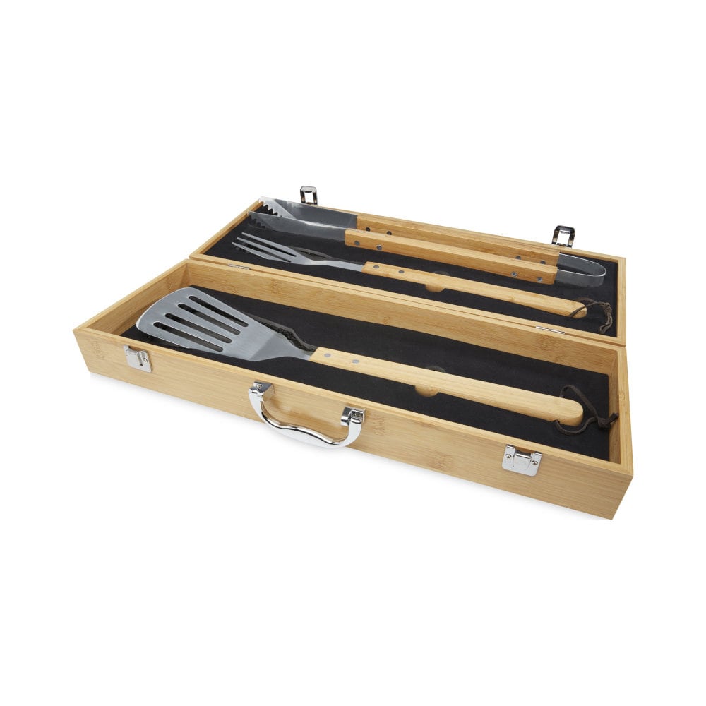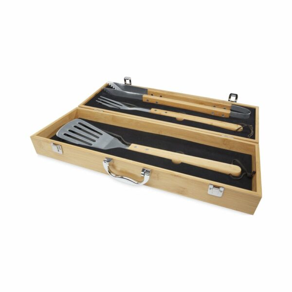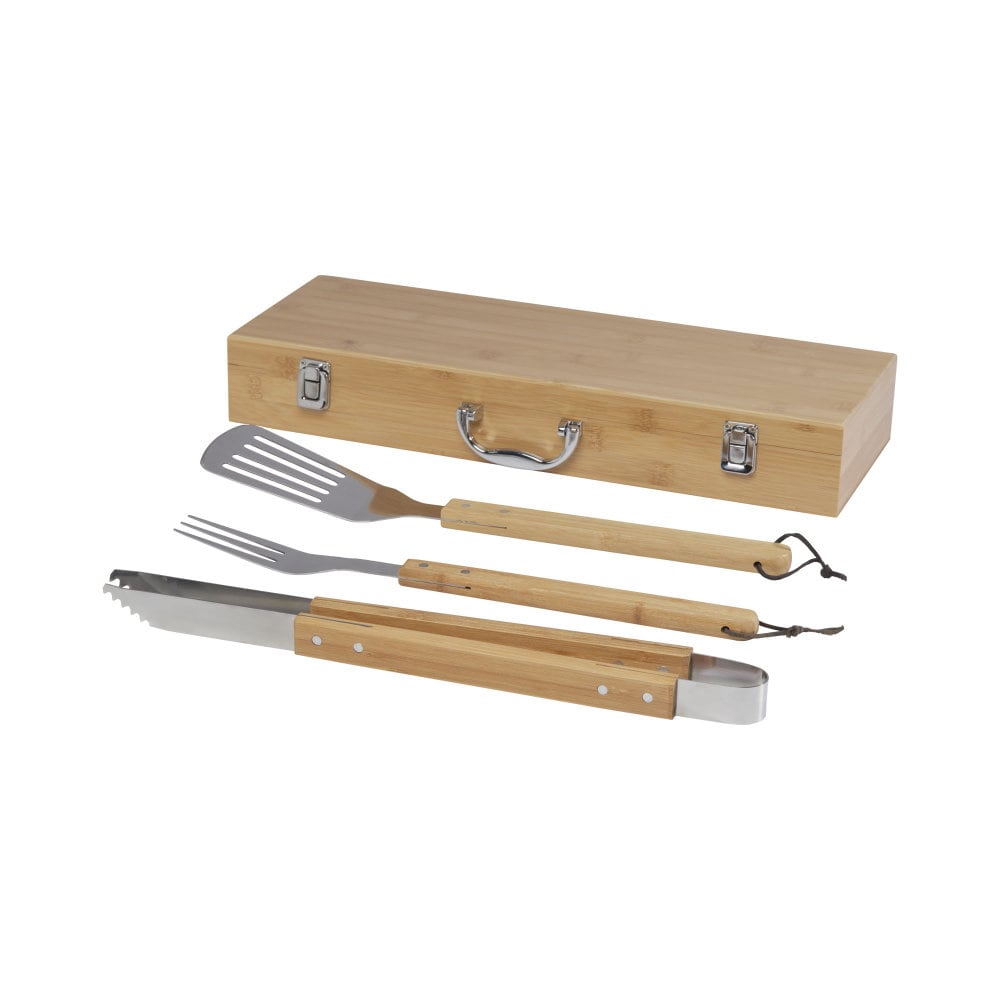 Bambusowy, 3-częściowy zestaw do grillowania to idealny prezent dla każdego miłośnika gotowania. W zestawie znajduje się łopatka, szczypce oraz widelec, wykonane z bambusa pozyskiwanego i produkowanego zgodnie z zasadami zrównoważonego rozwoju. Uchwyty posiadają ergonomiczny design i są wygodne w użyciu. Całość zapakowana jest w bambusowe pudełko upominkowe, które zostało zaprojektowane tak, aby zapewnić bezpieczeństwo produktom. Ten zestaw to idealny prezent dla każdego, kto lubi grillować.
