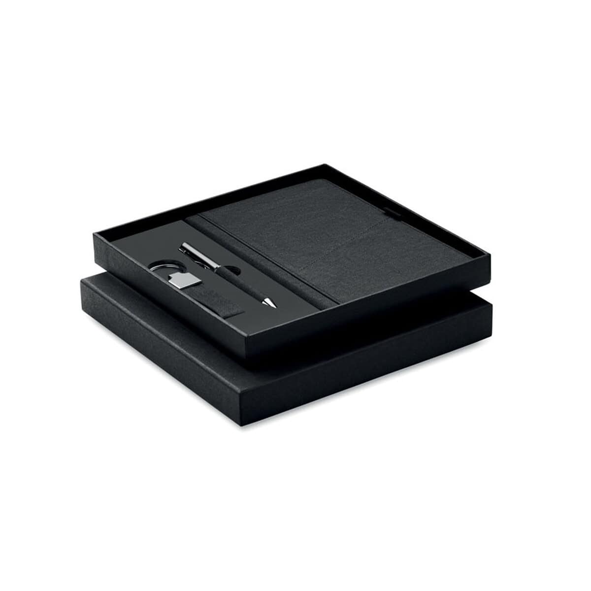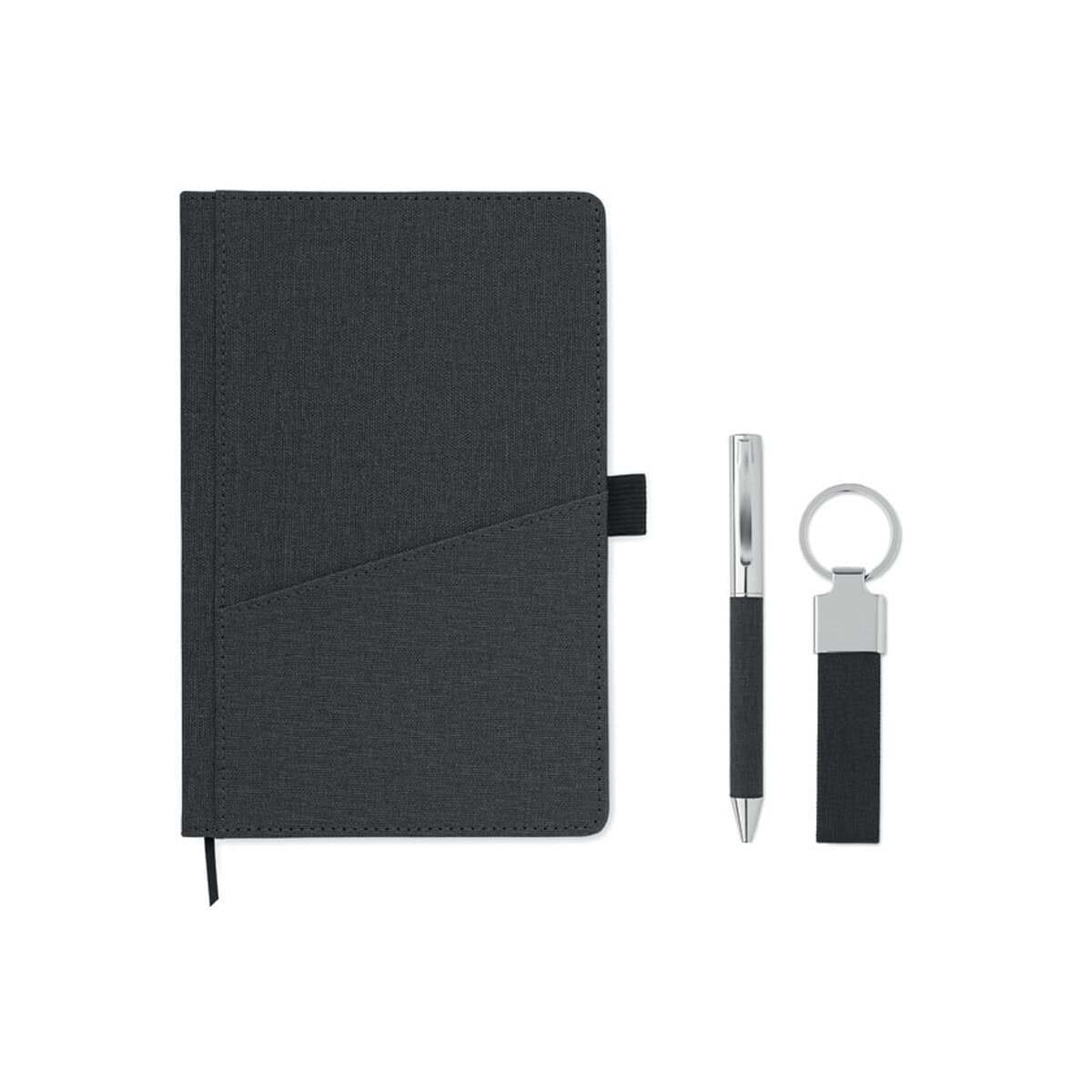 3-częściowy zestaw upominkowy SCRIBI 4 to znakomity gadżet reklamowy, który sprawdzi się w promocji branży finansowej, edukacyjnej, IT, a także sektora eko-start-upów. Dzięki wykonaniu z materiału RPET podkreślasz odpowiedzialność środowiskową, co jest dziś niezwykle cenione. Komplet idealnie pasuje na konferencje, targi oraz spotkania biznesowe, gdzie każdy uczestnik doceni funkcjonalny notes na notatki i wizytówki, elegancki długopis oraz praktyczny brelok do kluczy czy identyfikatora 🙂