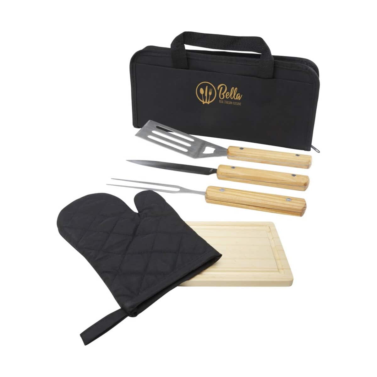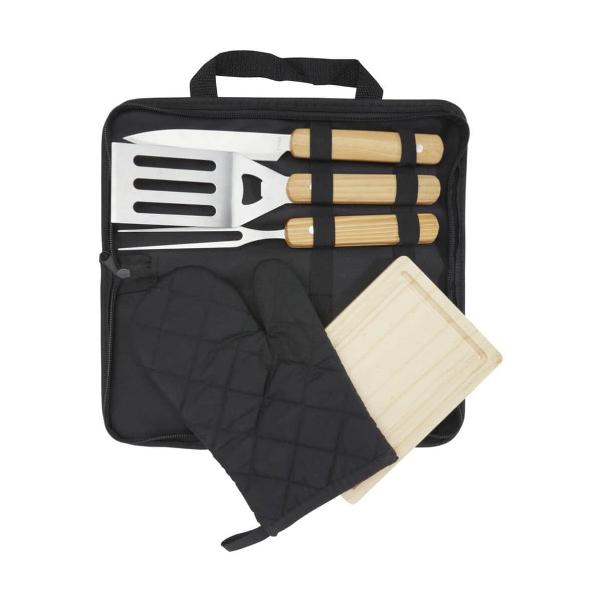 5-częściowy zestaw do grillowania Gratar to znakomity, praktyczny i elegancki gadżet, który wniesie profesjonalny sznyt na każde plenerowe przyjęcie lub firmowy event. W komplecie znajdziesz łopatkę (29 × 7 cm), widelec (29 × 1,7 cm), nóż (29 × 2,4 cm), deskę do krojenia (19 × 13 × 1,1 cm) oraz rękawicę (25 × 16 cm). Wszystko zostało zamknięte w wygodnym etui o Wymiarach: 33 × 5 × 15 cm i wadze zaledwie 510 g, dzięki czemu łatwo je spakujesz do plecaka lub bagażnika. Połączenie Materiałów: Nylon, Stal nierdzewna, Drewno gwarantuje trwałość, a modny kolor piasek pustyni podkreśla stylowy design. 🔥