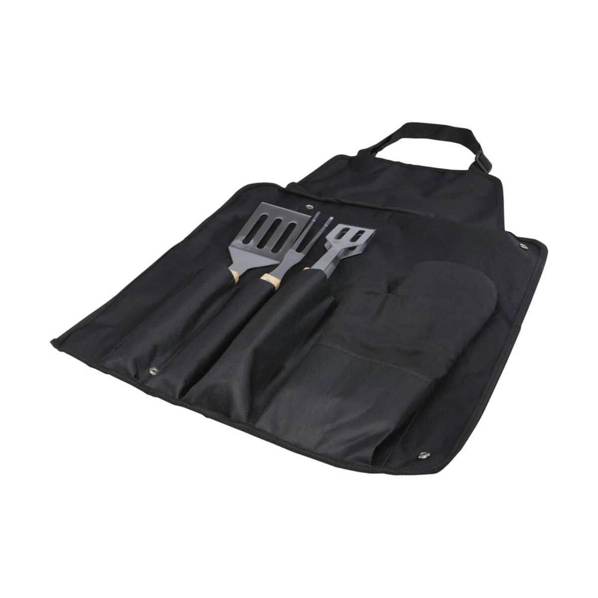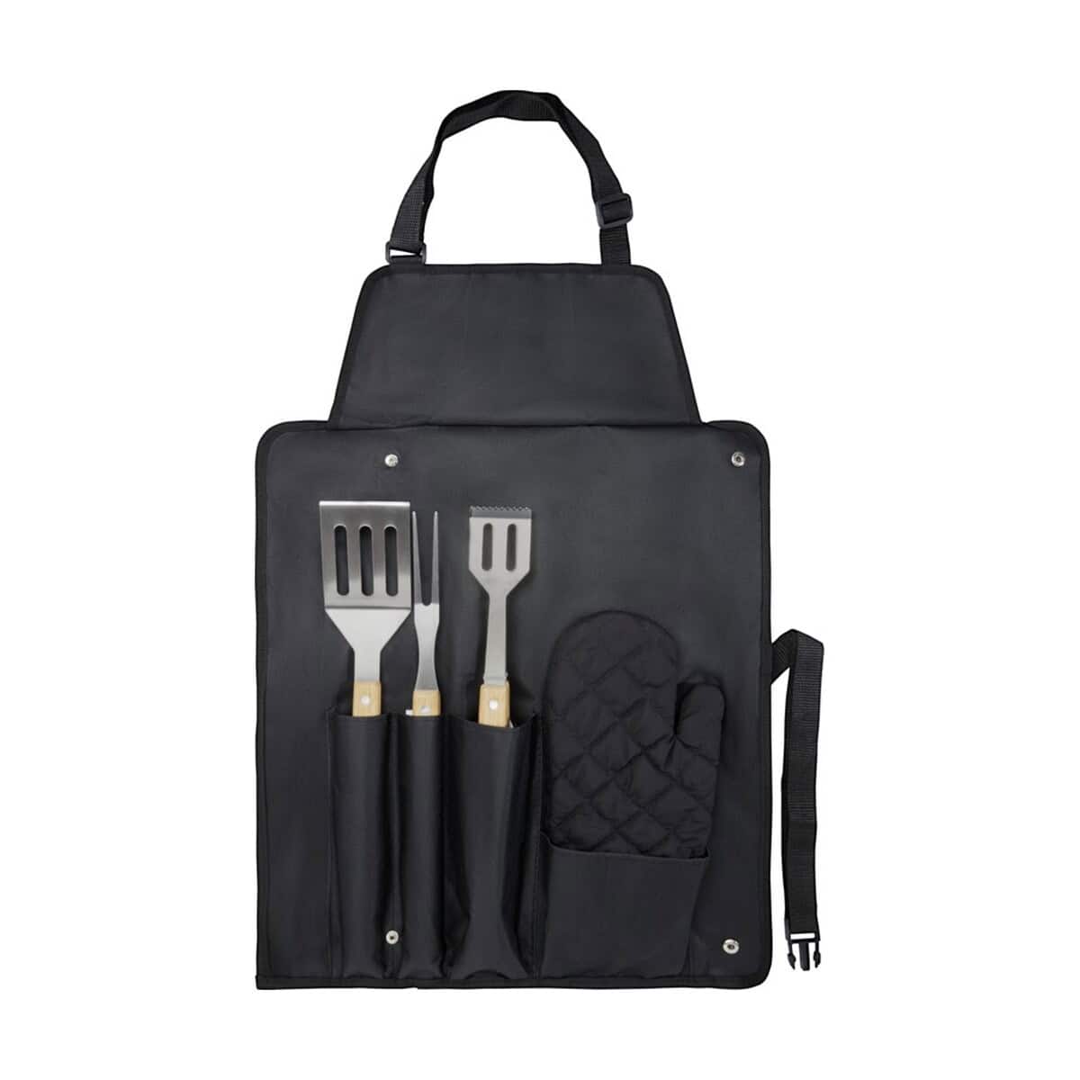 5-częściowy zestaw do grillowania Gril to prawdziwie doskonały kompan letnich spotkań przy ruszcie. W skład kompletu wchodzą: łopatka 36,5 × 7 cm, widelec 36,5 × 2 cm, szczypce 36,5 × 5 cm, rękawica 25 × 16 cm oraz fartuch 42 × 60 cm pełniący funkcję futerału – wszystkie te cechy produktu czynią go praktycznym i kompaktowym. Narzędzia wykonano ze stali nierdzewnej, a ich ergonomiczne uchwyty z bambusa pozyskanego w duchu zrównoważonego rozwoju. Całość waży jedynie 700 g, dzięki czemu łatwo zabrać ją na piknik, działkę czy nad jezioro 😊.