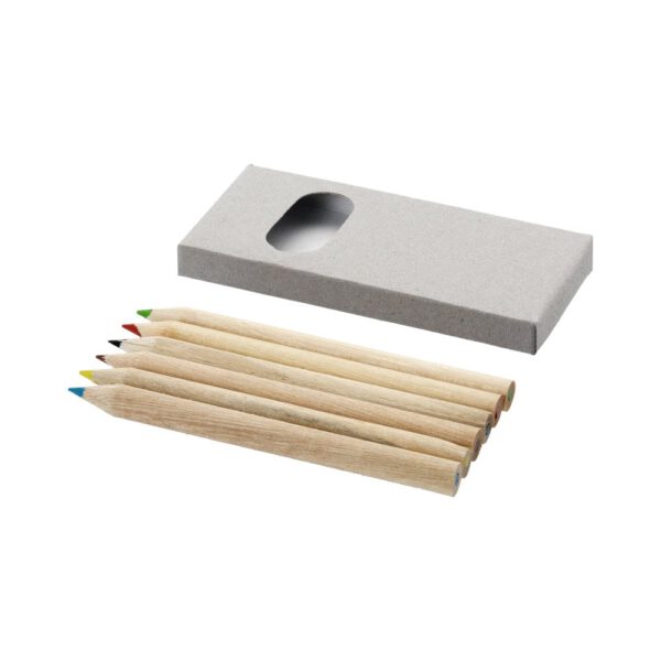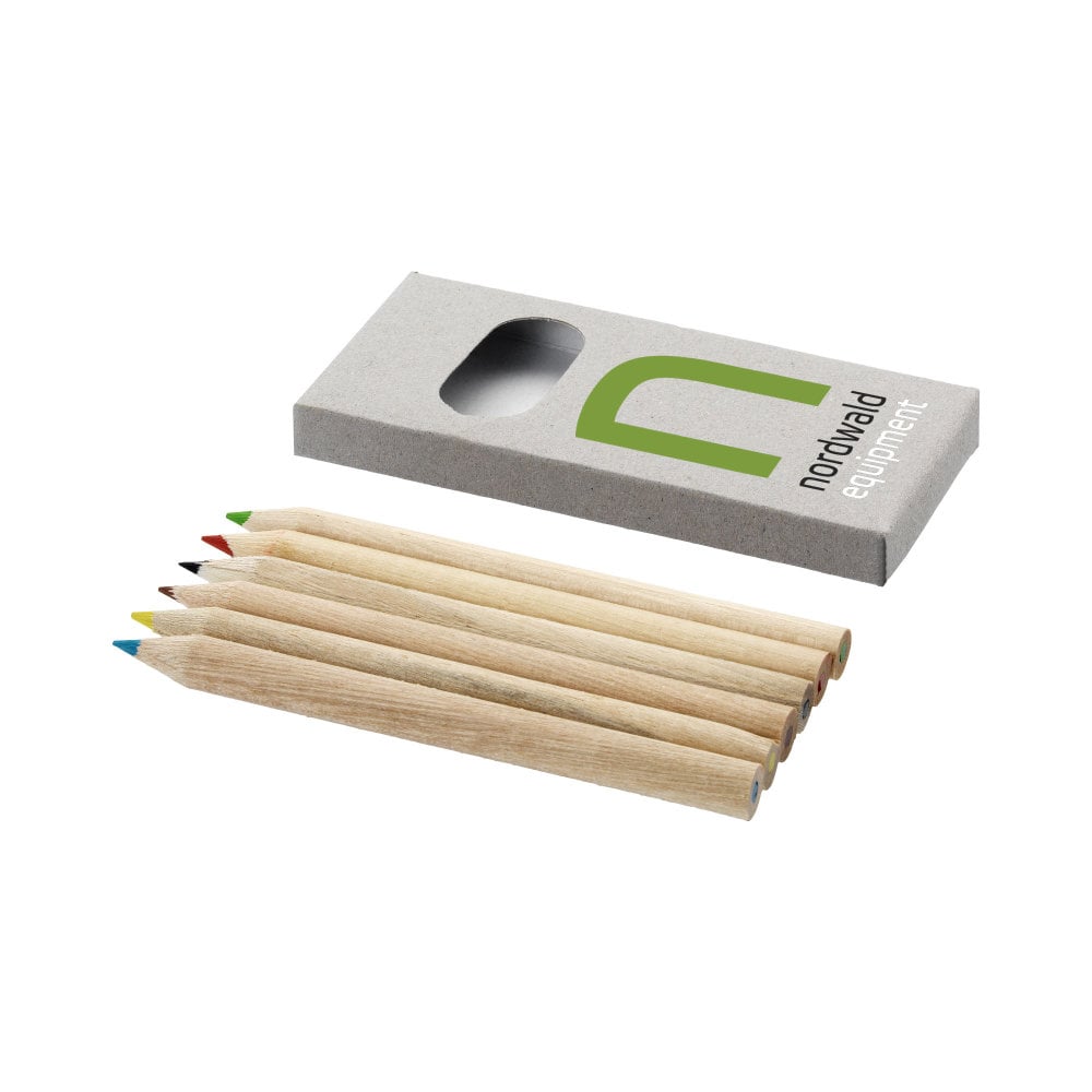 Zestaw 6 kolorowych kredek to idealny prezent dla dzieci, które lubią tworzyć swoje własne dzieła. Kredki są dostępne w sześciu różnych pełnych i ciepłych kolorach, które idealnie nadają się do tworzenia pięknych obrazów. Zestaw został wykonany z wysokiej jakości drewna, które zapewnia trwałość i wytrzymałość. Każda kredka ma kształt trójkąta, który zapewnia dzieciom wygodną i solidną przyczepność, dzięki czemu mogą tworzyć piękne rysunki. Niestety, nadruk nie jest możliwy na poszczególnych elementach zestawu.