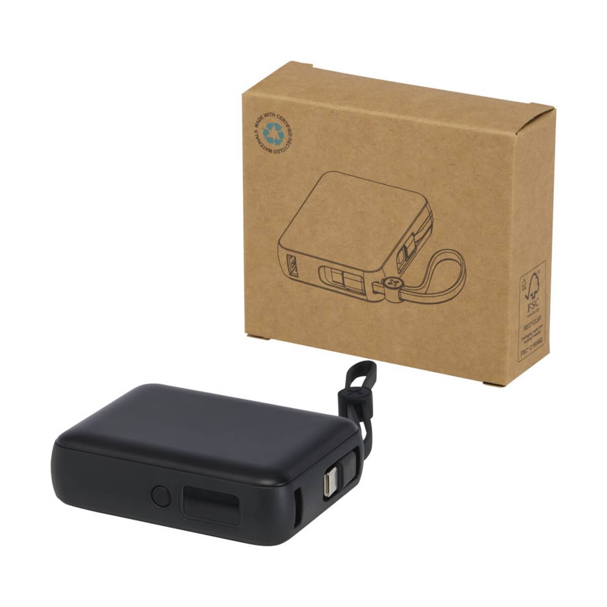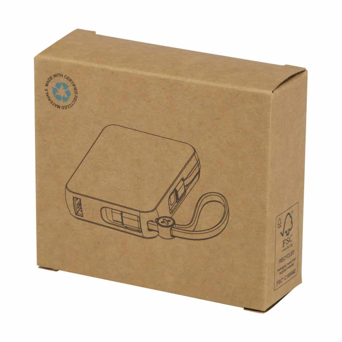 Acrux powerbank do tabletu o pojemności 10 000 mAh i mocy 35 W z wbudowanym kablem typu C – wykonany z tworzyw sztucznych pochodzących z recyklingu to znakomity wybór dla nowoczesnych marek, które chcą połączyć ekologię z funkcjonalnością 🌱. Kompaktowe wymiary 8,7 × 2,6 × 6,6 cm i masa zaledwie 199 g czynią go mobilnym sprzymierzeńcem podczas podróży służbowych oraz eventów outdoorowych. Obudowa z plastiku ABS z recyklingu podkreśla troskę o środowisko, co dodatkowo buduje pozytywny wizerunek dla Twojej firmy.