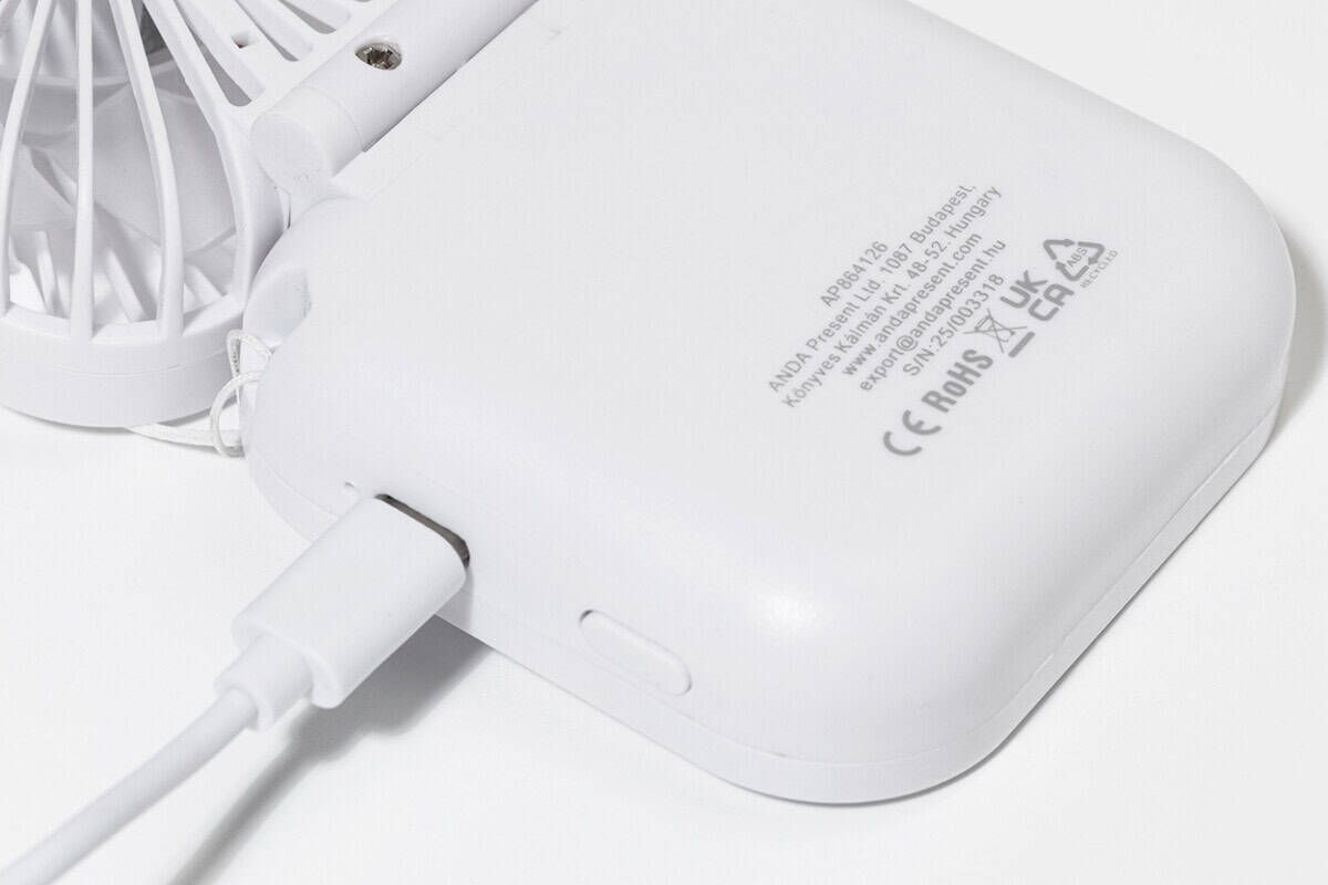 Aerofold wiatrak akumulatorowy RABS to kompaktowy, a zarazem niezwykle funkcjonalny gadżet z kategorii Wentylatory z logo oraz Akcesoria plażowe z logo, który w letnie dni wprowadzi powiew przyjemnego chłodu tam, gdzie go najbardziej potrzebujesz. Wykonany z recyklingowanego ABS, waży zaledwie 120 g, dzięki czemu można go nosić na dołączonej smyczy bez odczuwania dyskomfortu. Biały korpus stanowi doskonałe tło pod nadruk firmowy, a duża powierzchnia ekspozycji sprawia, że urządzenie zamienia się w poręczny nośnik przekazu reklamowego 🙂