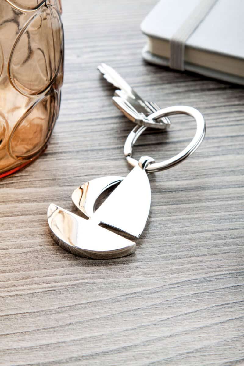 Jego Wymiary: 40×57 mm oraz Waga: 35 g sprawiają, że jest lekki, poręczny i komfortowy w użyciu. Wykonany z wytrzymałego Materiał: metal w ponadczasowym, Kolory: srebrny doskonale komponuje się z nowoczesnym stylem kluczy, toreb czy plecaków. To zatem znakomity wybór dla firm z branży żeglarskiej, turystycznej, transportowej, logistycznej, a nawet deweloperskiej – wszędzie tam, gdzie motyw łodzi i solidność są mile widziane.