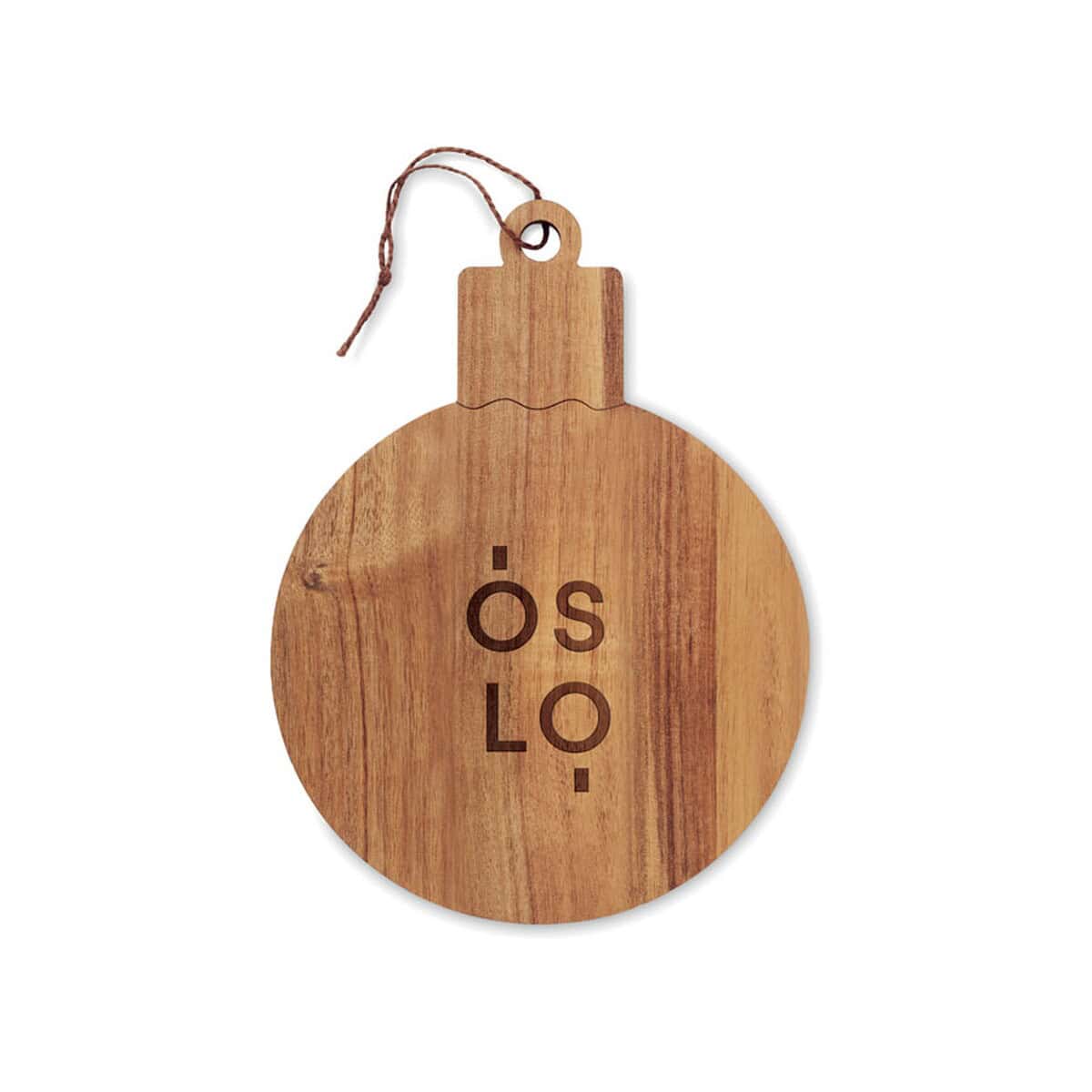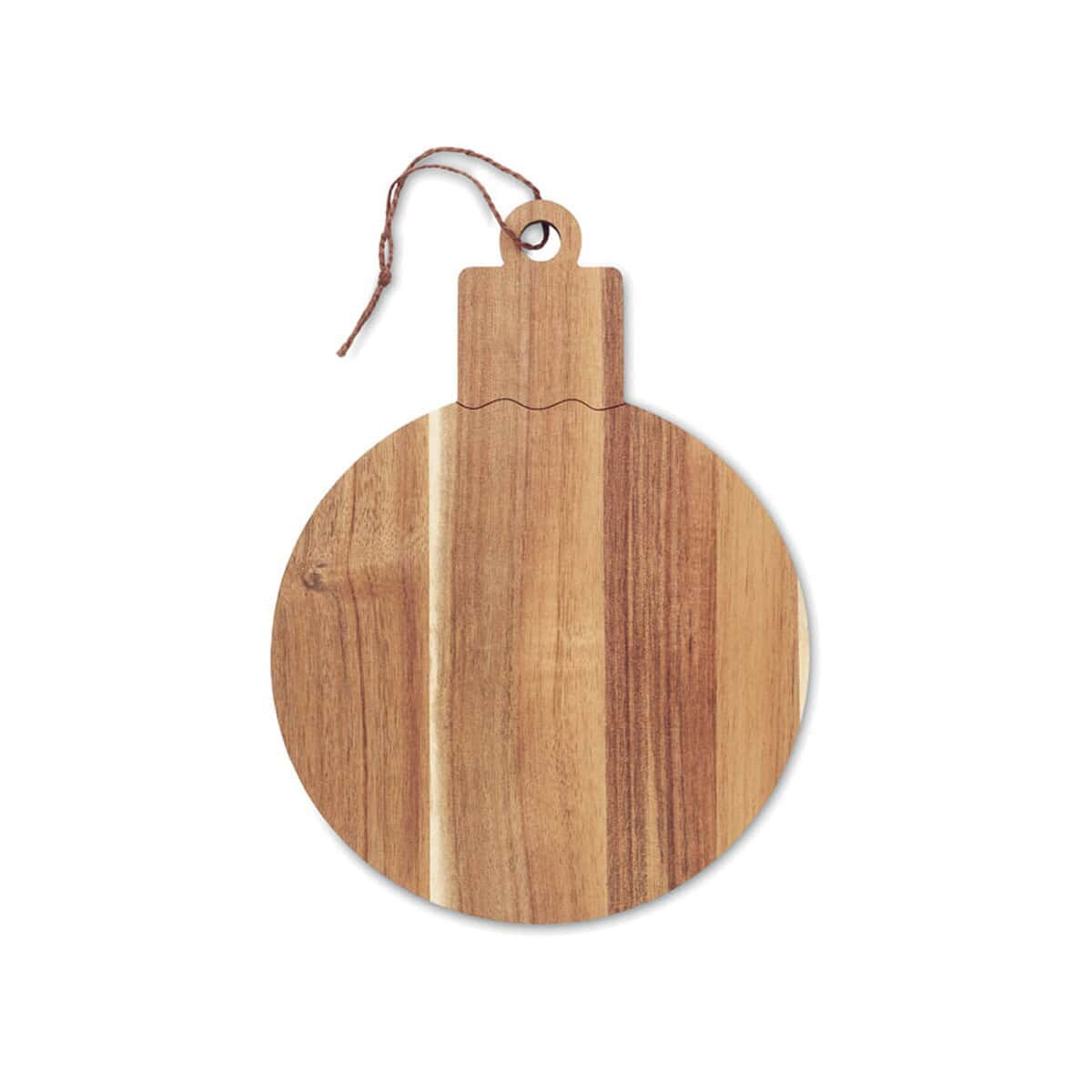 Akacjowa deska do serwowania ACABALL to wyjątkowy gadżet, który wniesie powiew naturalnej elegancji na każdy stół. Wykonana z pełnego drewna akacjowego w finezyjnym kształcie bombki choinkowej, zachwyca wyrazistym usłojeniem i przyjemnym w dotyku wykończeniem. Dzięki starannie zamocowanemu sznurkowi z PU można ją zawiesić w widocznym miejscu, eksponując firmowe logo lub artystyczny nadruk 🎄. To doskonały wybór jako upominek reklamowy — sprawdzi się w branży gastronomicznej, hotelarskiej, a także w sklepach z produktami ekologicznymi czy salonach wyposażenia wnętrz. Klienci zapamiętają taki prezent, a marka pozostanie w ich świadomości na długo.
