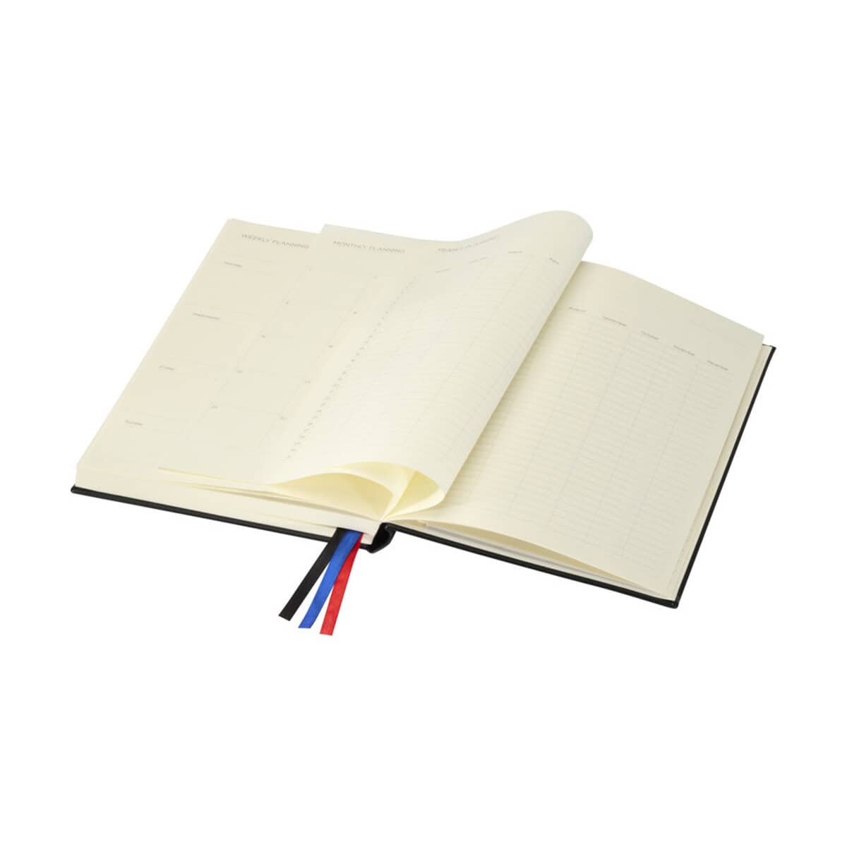 Alder notatnik A5 w twardej okładce to elegancki i funkcjonalny gadżet, który odmieni biurową rutynę i podkreśli profesjonalizm marki 😊. Wykonany z przetworzonego plastiku skóropodobnego i certyfikowanego papieru FSC, waży zaledwie 605 g, a kompaktowe wymiary 21,5 × Ø 15,3 cm sprawiają, że zmieści się w każdej torbie konferencyjnej. W środku czeka aż 192 kremowe strony o gramaturze 80 g/m² z układem dziennego planera, trzy wstążkowe zakładki w różnych kolorach, dwie gumki, 200 samoprzylepnych karteczek i praktyczna kieszonka na luźne notatki. Całość zdobi subtelne tłoczone logo JournalBooks, które można uzupełnić o Twój spersonalizowany nadruk.