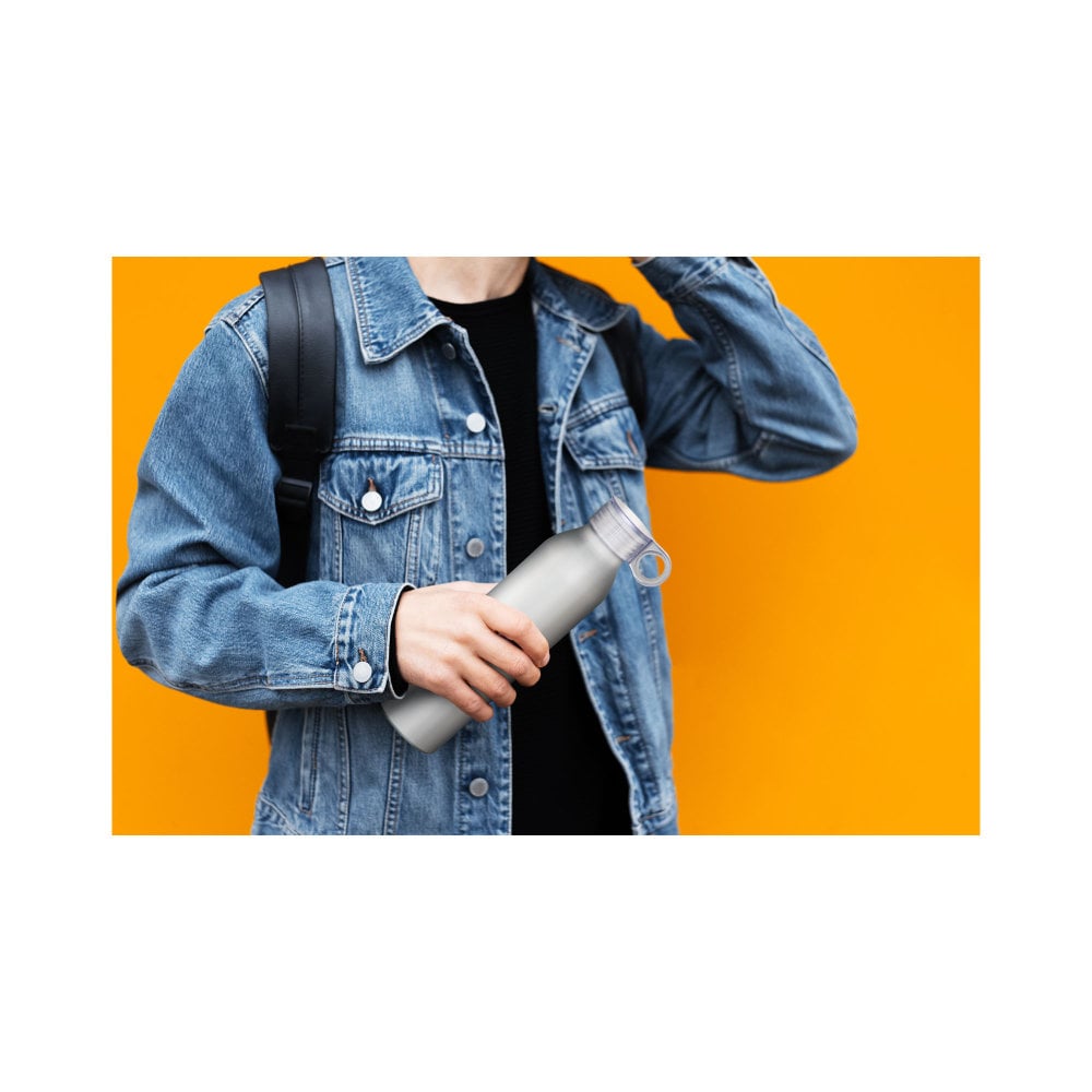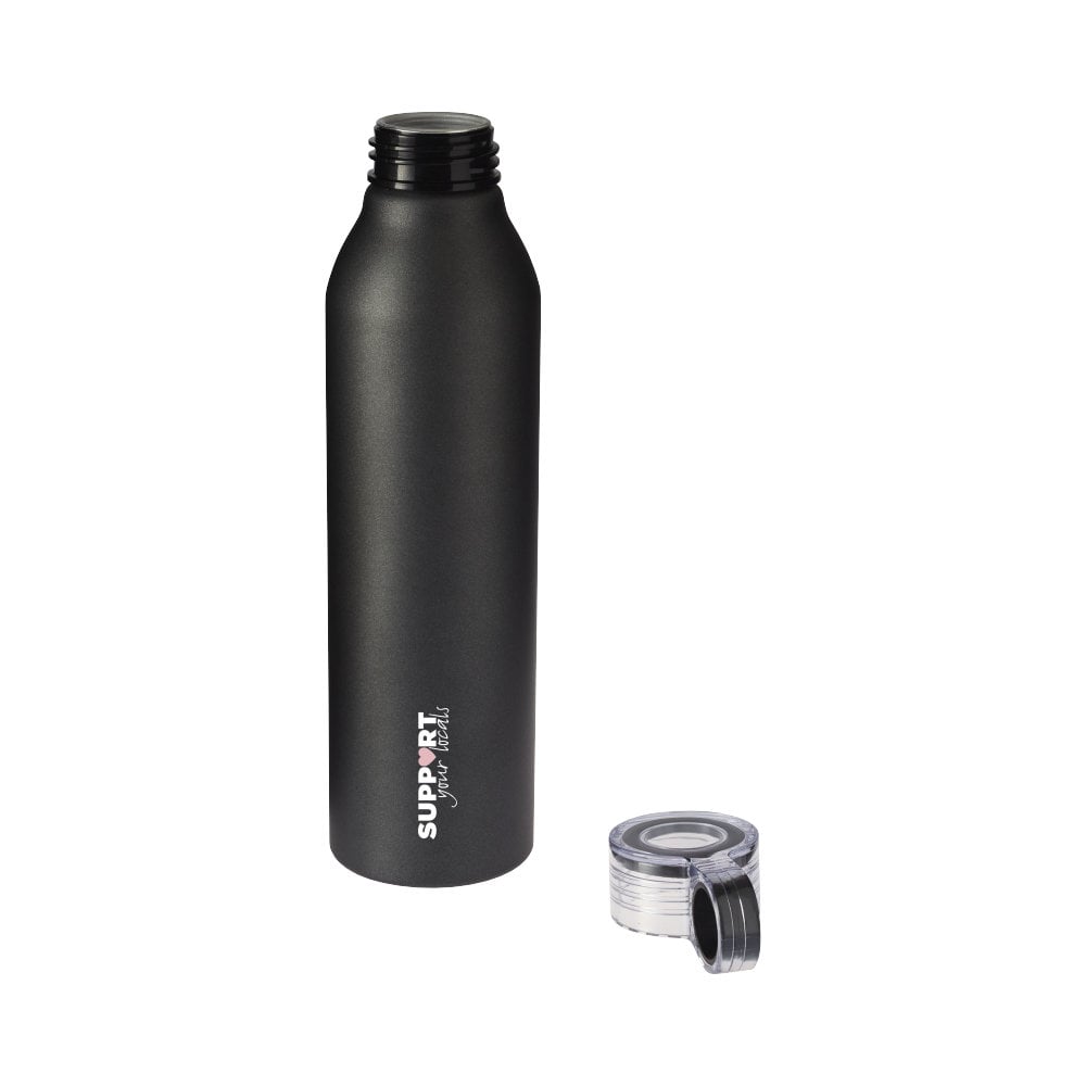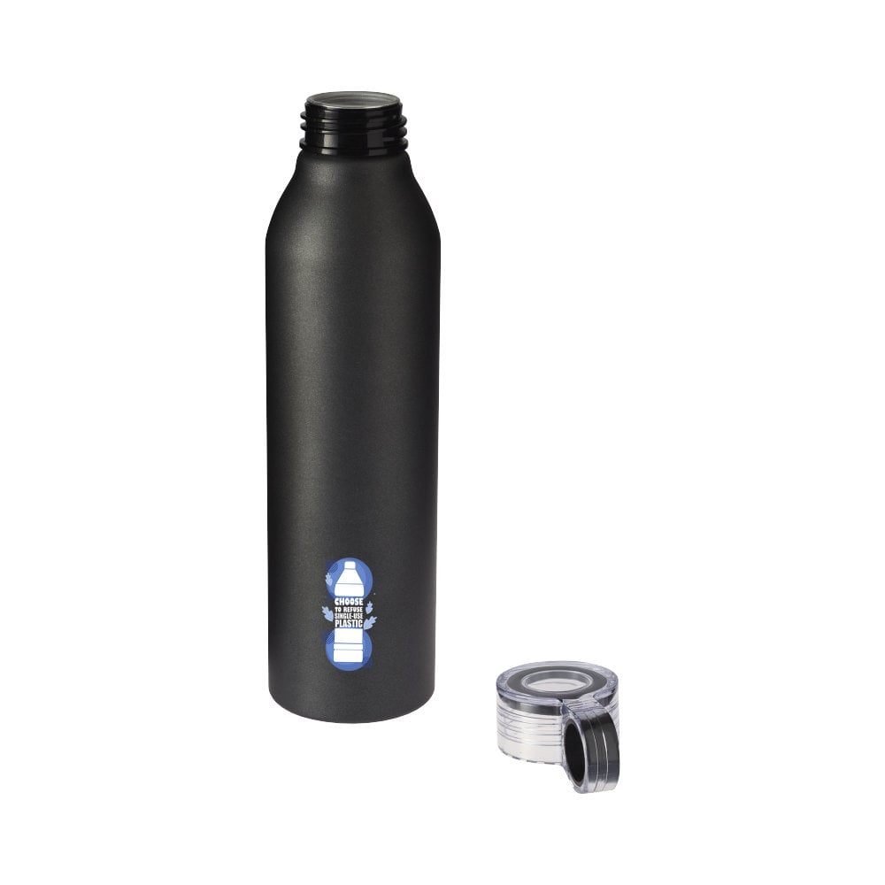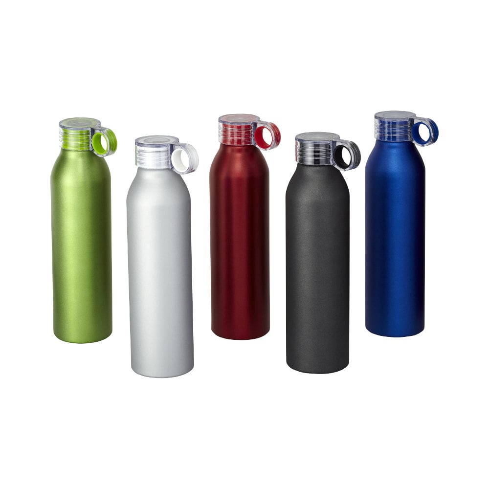 Aluminiowa butelka sportowa Grom o pojemności 650 ml to idealny wybór dla miłośników aktywnego stylu życia. Lekka i trwała, posiada przezroczystą, odporną na rozlanie zakręcaną pokrywkę, która wyposażona jest w pętelkę z funkcją color-pop, aby ułatwić przenoszenie. Charakteryzuje się matowym, metalicznym wykończeniem, nadając butelce stylowy wygląd. Ciesz się swobodą i wygodą, które zapewnia butelka Grom, niezależnie od tego, co chcesz uczcić.