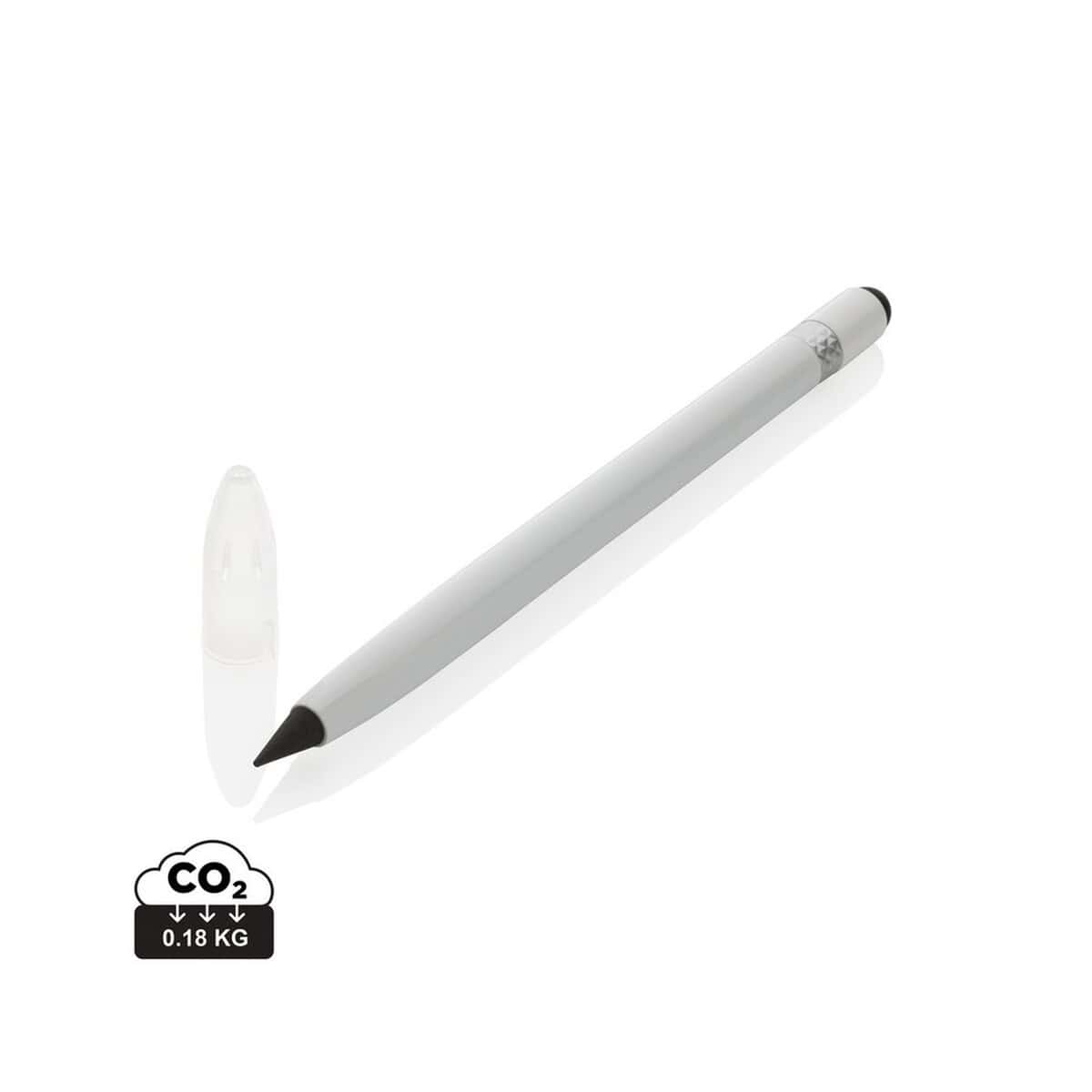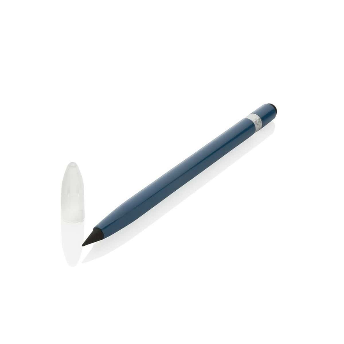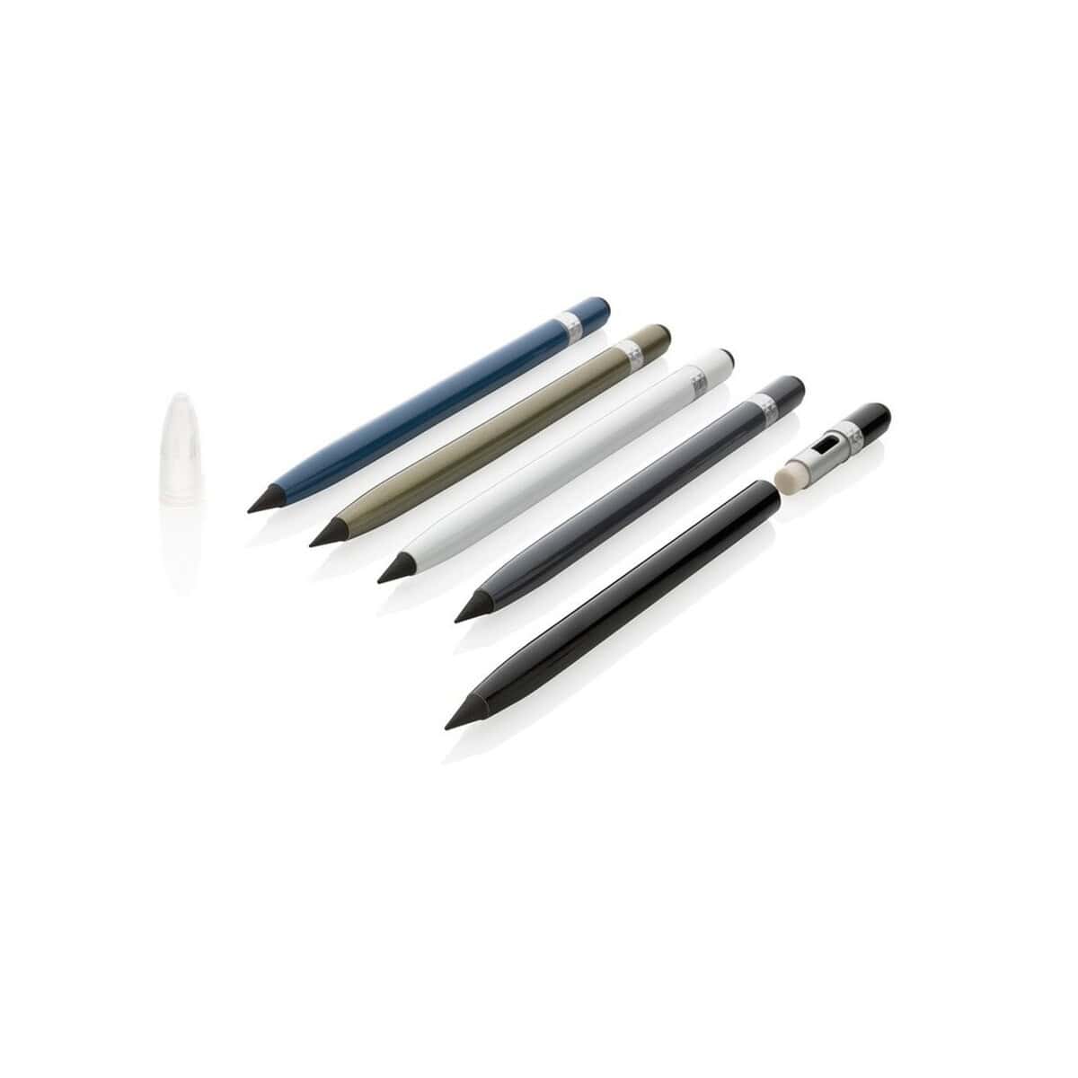 Aluminiowy „wieczny” ołówek z gumką to doskonały gadżet reklamowy dla branż kreatywnych, architektonicznych, edukacyjnych, a także dla firm stawiających na zrównoważony rozwój. Na aluminiowej obudowie znakomicie prezentuje się logo oraz precyzyjny nadruk, dlatego produkt świetnie wpisuje się w kategorie Ołówki z logo i Długopisy metalowe z logo. Możesz wybrać jeden z pięciu eleganckich kolorów – niebieski, czarny, biały, zielony lub szary – i dopasować go do identyfikacji wizualnej dla Twojej firmy.