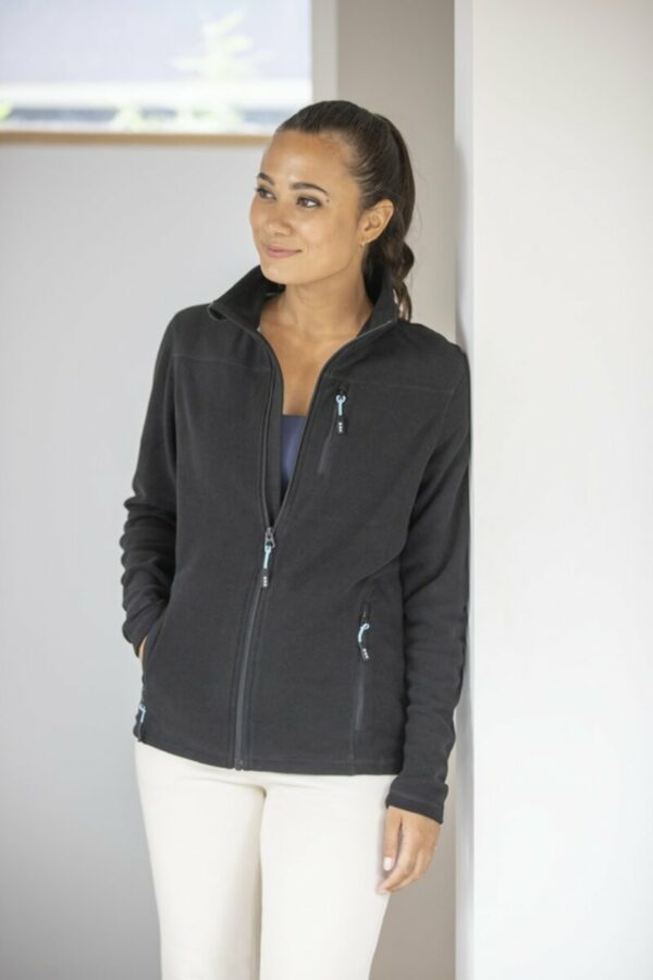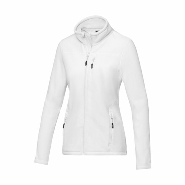 Zamek błyskawiczny z nylonu z recyklingu z certyfikatem GRS na środku z przodu. Zakładka sztormowa z blokadą chroniącą przed zranieniem podbródka. Przednie kieszenie na zamek błyskawiczny. Kieszeń na piersi zamykana na zamek błyskawiczny. Antypoślizgowe końcówki suwaków. Markowa pętla do wieszania. Taśma osłaniająca kołnierzyk. Półksiężyc. Metka wdrukowana transferem dla lepszego komfortu.