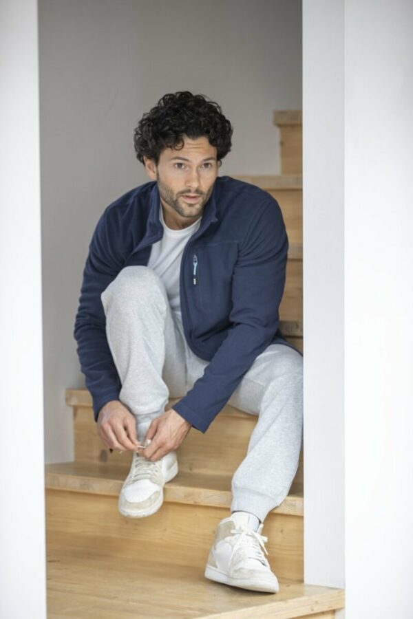 Zamek błyskawiczny z nylonu z recyklingu z certyfikatem GRS na środku z przodu. Zakładka sztormowa z blokadą chroniącą przed zranieniem podbródka. Przednie kieszenie na zamek błyskawiczny. Kieszeń na piersi zamykana na zamek błyskawiczny. Antypoślizgowe końcówki suwaków. Markowa pętla do wieszania. Taśma osłaniająca kołnierzyk. Półksiężyc. Metka wdrukowana transferem dla lepszego komfortu.