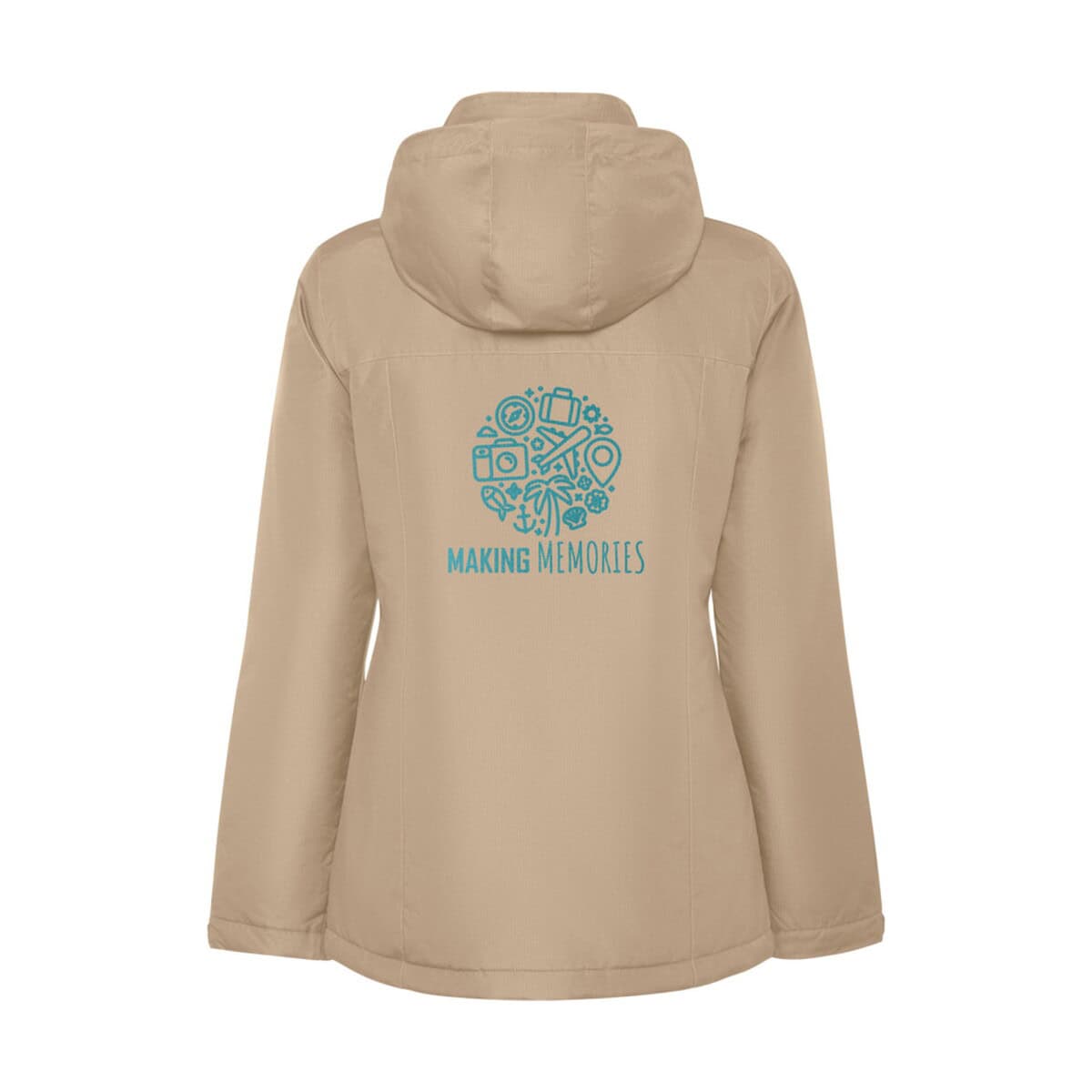 America damska ocieplana kurtka typu parka to niezwykle funkcjonalny i zarazem stylowy wybór, który wyróżni zarówno Ciebie, jak i Twoje logo na tle miejskiej dżungli. Wykonana z 100% recyklingowanego poliestru o wadze zaledwie 850 g, zachowuje lekkość, a jednocześnie gwarantuje przyjemne ciepło dzięki ociepleniu z nowoczesnego wypełnienia. Jej wodoodporna powłoka oraz wysoki kołnierz ze składanym, odpinanym kapturem skutecznie chronią przed wiatrem i deszczem, a dopasowany krój podkreśla kobiecą sylwetkę 😊.