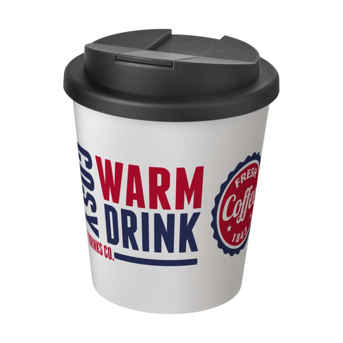 Americano® Espresso 250 ml tumbler with spill-proof lid to gadżet, który znakomicie sprawdzi się w każdej kampanii reklamowej. Dzięki kompaktowej pojemności 250 ml i podwójnym ściankom z polipropylenu kubek utrzymuje temperaturę espresso, cappuccino czy herbaty dłużej niż standardowe naczynia. Wieczko typu twist-on z klipsem zapobiega przypadkowemu rozlaniu napoju, a brak silikonu ułatwia pełny recykling. Kubek jest przystosowany do zmywarki i mikrofalówki, zgodny z normą EN12875-1 oraz wyprodukowany w Wielkiej Brytanii. 🙂