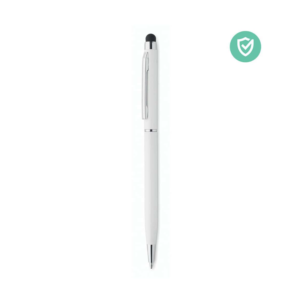 Antybakt. długopis z rysikiem NEILO CLEAN to nowoczesny, wielofunkcyjny gadżet stworzony z myślą o zdrowiu i wygodzie użytkowników. Aluminiowy korpus z powłoką antybakteryjną zgodną z normą ISO 22196 ogranicza rozwój drobnoustrojów, a błyszczący, chromowany klips dodaje elegancji. Mechanizm przekręcany chroni wkład, a precyzyjny rysik pozwala na płynną obsługę ekranów dotykowych — bez odcisków palców! 🙂