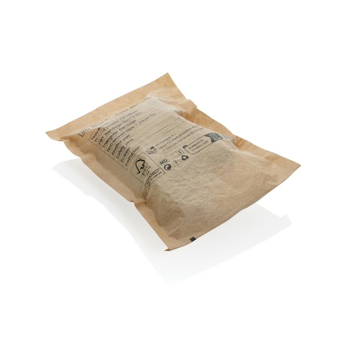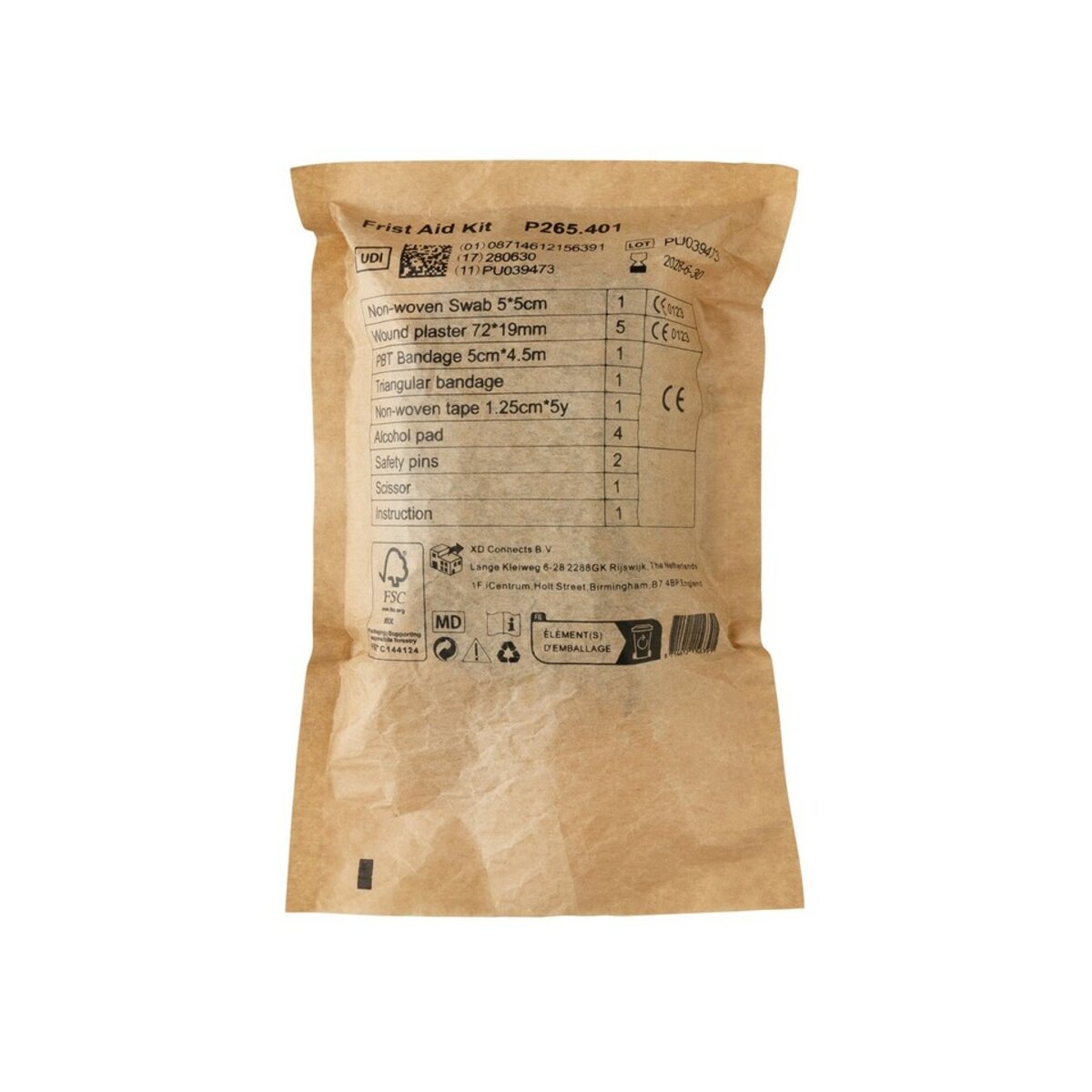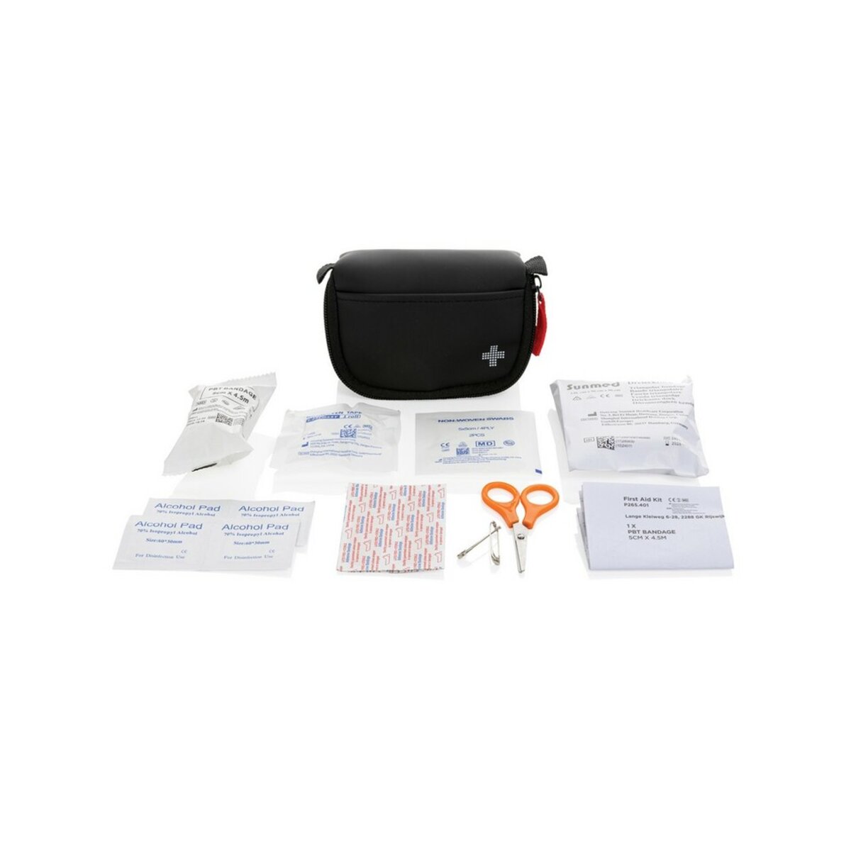 Zawartość tej kompaktowej apteczki obejmuje 16 elementów: bandaż trójkątny, bandaż PBT, waciki nasączone alkoholem, plastry, nożyczki, szpilki i taśmę, wszystko zatwierdzone standardami EN ISO 13485:2016, 93/42/EWG oraz UE (2017/745). Jest to zestaw pierwszej pomocy, który spełni oczekiwania nawet w najtrudniejszych sytuacjach.