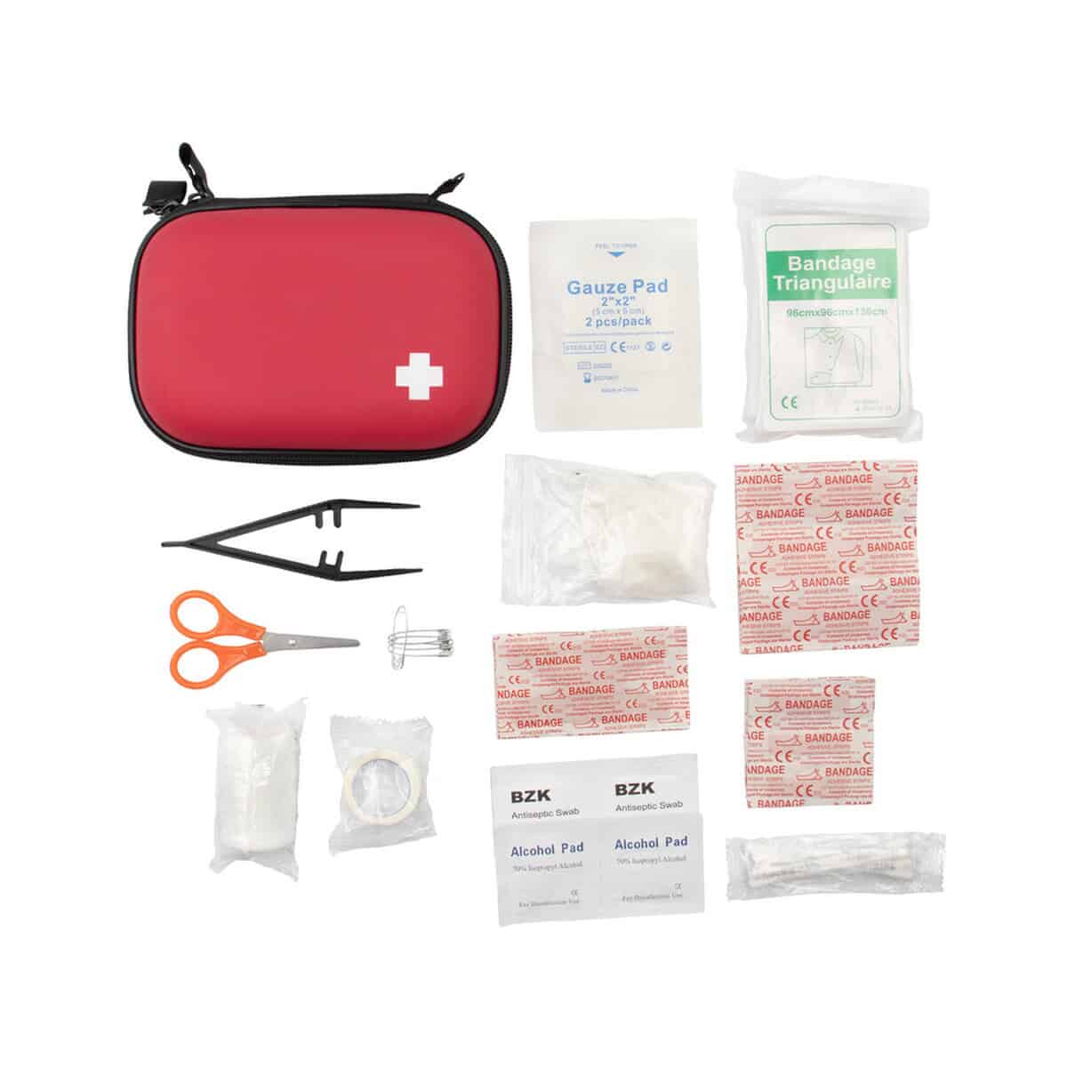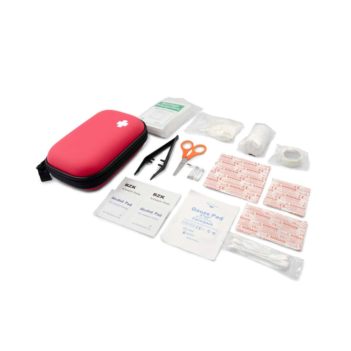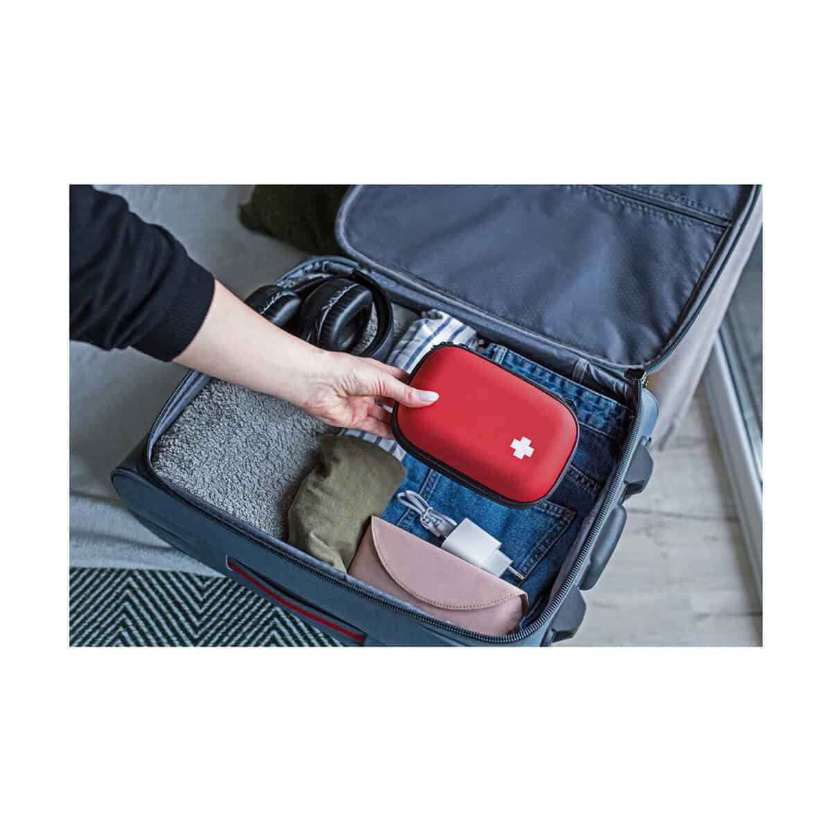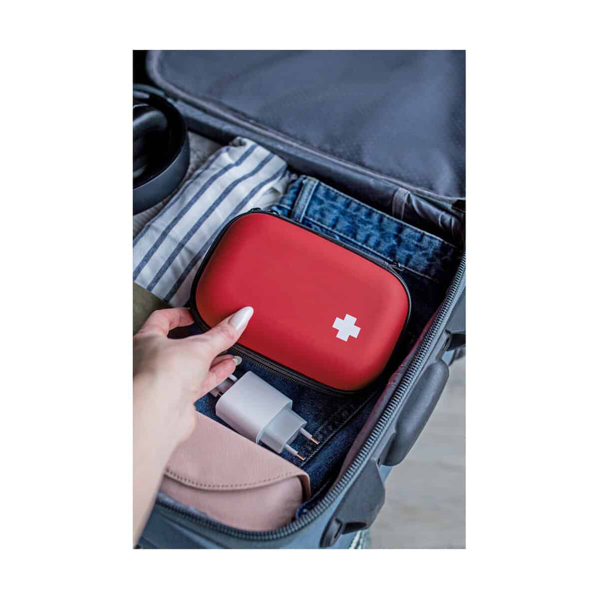 Apteczka w pokrowcu, 45 el. | Bao to znakomity pomocnik w każdej sytuacji, w której liczy się szybka reakcja i bezpieczeństwo. Kompaktowe wymiary 11 x 15,3 x 6 cm oraz wytrzymały materiał: PU powodują, że bez trudu mieści się w samochodowym schowku, plecaku pracownika terenowego czy w szufladzie biurka. Soczysty, dobrze widoczny kolor czerwony błyskawicznie zwraca uwagę w nagłych wypadkach, a przemyślana przegroda na zamek błyskawiczny pozwala błyskawicznie wydobyć potrzebny opatrunek 🩹. 45 starannie dobranych elementów sprawia, że zestaw jest doskonałym wsparciem zarówno podczas służbowych delegacji, jak i rodzinnych wyjazdów.