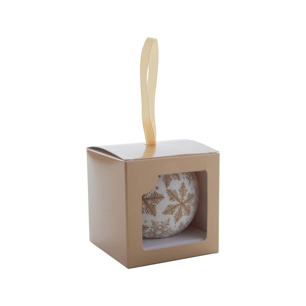 Świąteczny nadruk może przyjąć formę klasycznego logotypu, inspirującej sentencji lub limitowanej grafiki – wszystko zależy od konceptu kampanii. Bombka waży zaledwie 36,8 g, więc świetnie nadaje się do wysyłek pocztowych czy kurierem, nie zawyżając kosztów transportu. Jej kompaktowe wymiary z opakowaniem 77 × 77 × 77 mm sprawiają, że zmieści się w ozdobnym koszu prezentowym, pudełku z firmową herbatą lub zestawie słodyczy.
