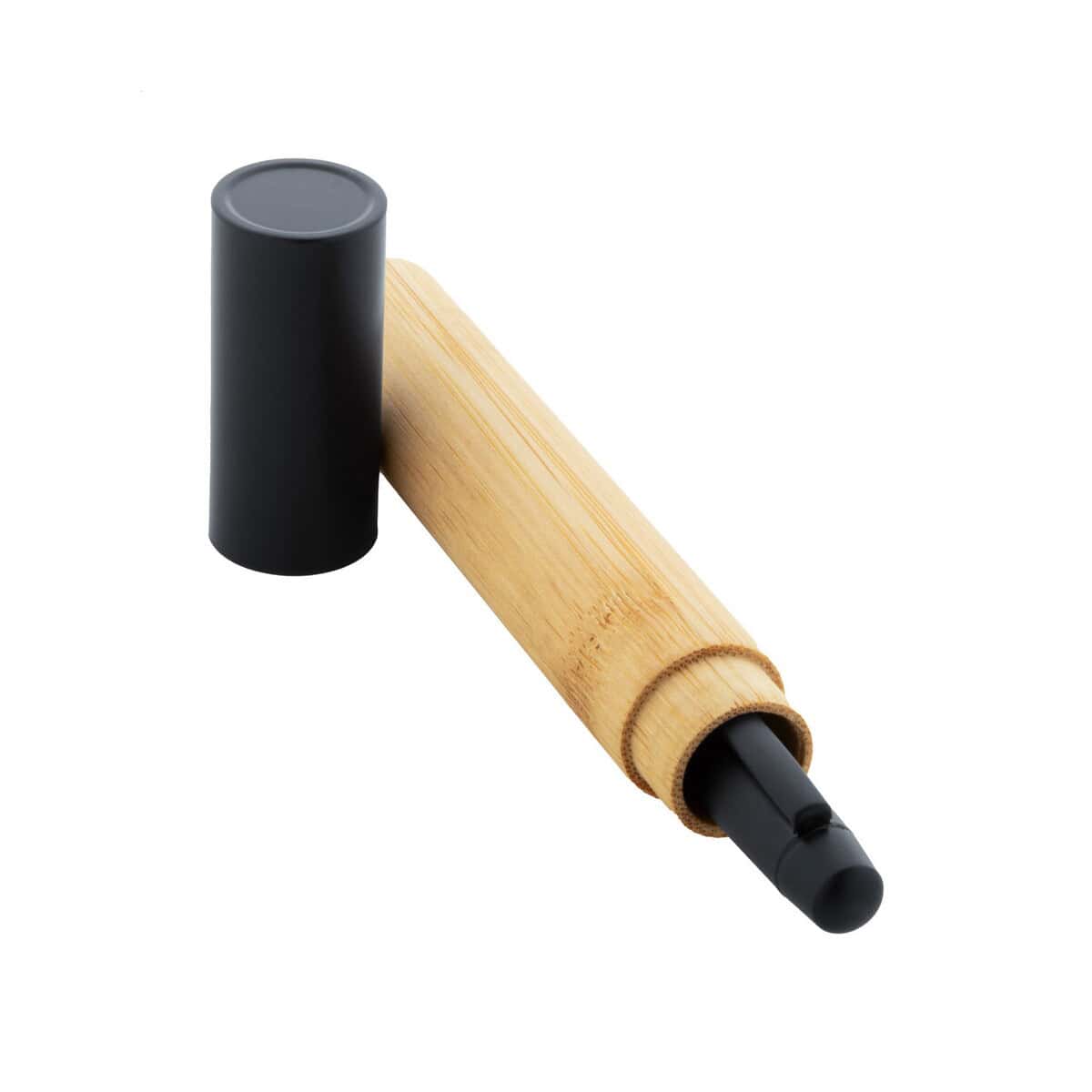 Baduru długopis to połączenie elegancji i ekologii, które wprowadzi świeży powiew natury do biurowej rzeczywistości. Czarna, metalowa końcówka subtelnie kontrastuje z gładką bambusową obudową, tworząc wyważoną kompozycję nowoczesności i przyjazności środowisku. Dzięki przekręcanemu mechanizmowi użytkowanie jest intuicyjne, a wymiar ø20×158 mm oraz waga 45 g gwarantują pewny chwyt i komfort nawet podczas długiego pisania. Niebieski wkład zapewnia wyrazisty, profesjonalny zapis, a całość zamknięta jest w stylowej bambusowej tubie z czarną zakrętką – to detal, który podnosi prestiż prezentu 🙂.