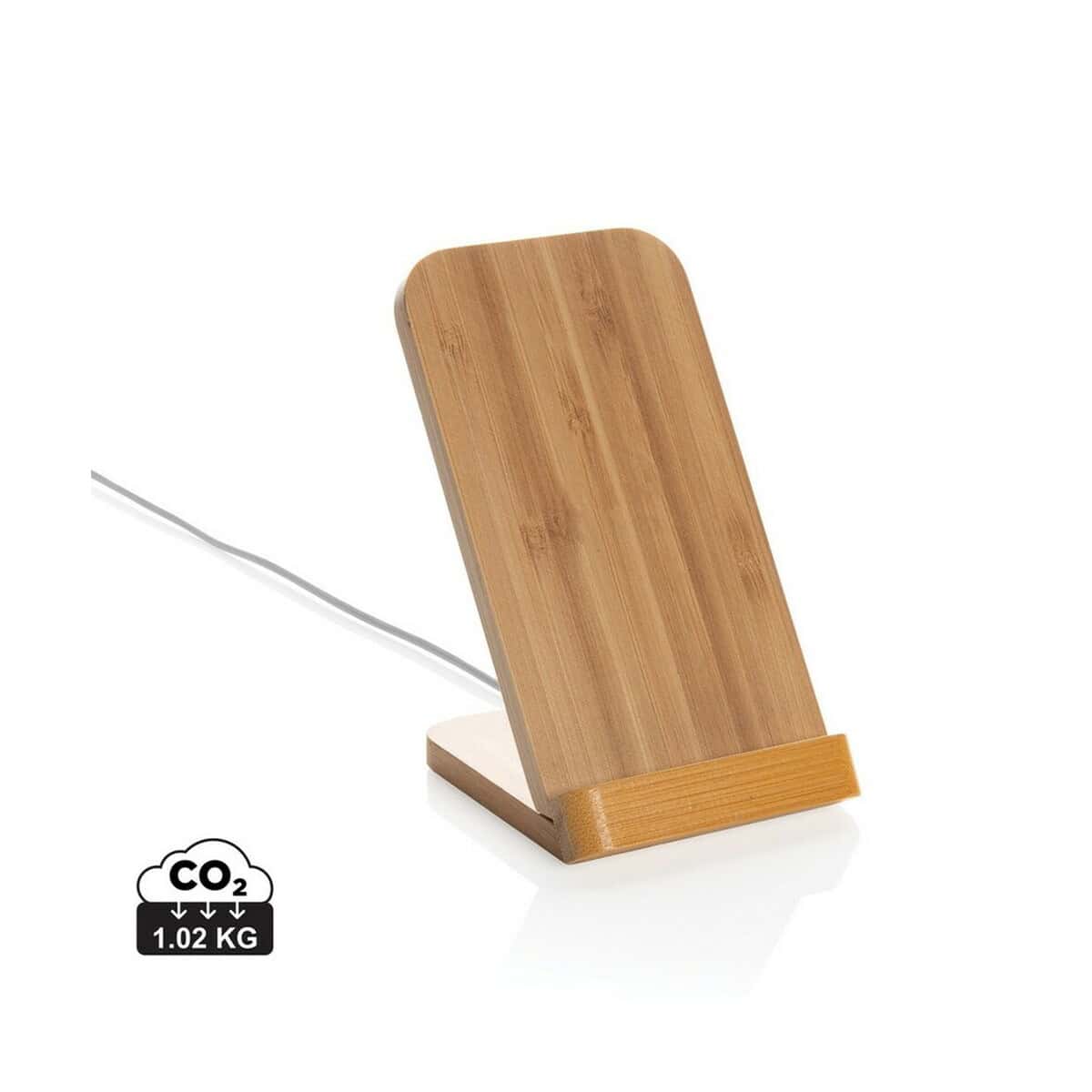 Bambusowa ładowarka bezprzewodowa 5W, stojak na telefon to ekologiczny, a zarazem nowoczesny gadżet, który podkreśli wizerunek każdej marki, stając się wyróżnikiem na biurkach pracowników i klientów 😊. Wykonana w 100 % z bambusa z certyfikatem FSC, przyciąga wzrok naturalnym kolorem brązu i wyjątkową fakturą drewna. Dzięki funkcji bezprzewodowego ładowania 5 W jest kompatybilna ze wszystkimi smartfonami obsługującymi Qi, a praktyczny kąt nachylenia pełni rolę stojaka, umożliwiając wygodne prowadzenie wideorozmów czy przeglądanie mediów społecznościowych. W zestawie znajduje się kabel 150 cm, a całość, łącznie z opakowaniem FSC, wolna jest od PVC – to doskonały wybór dla świadomych ekologicznie firm.