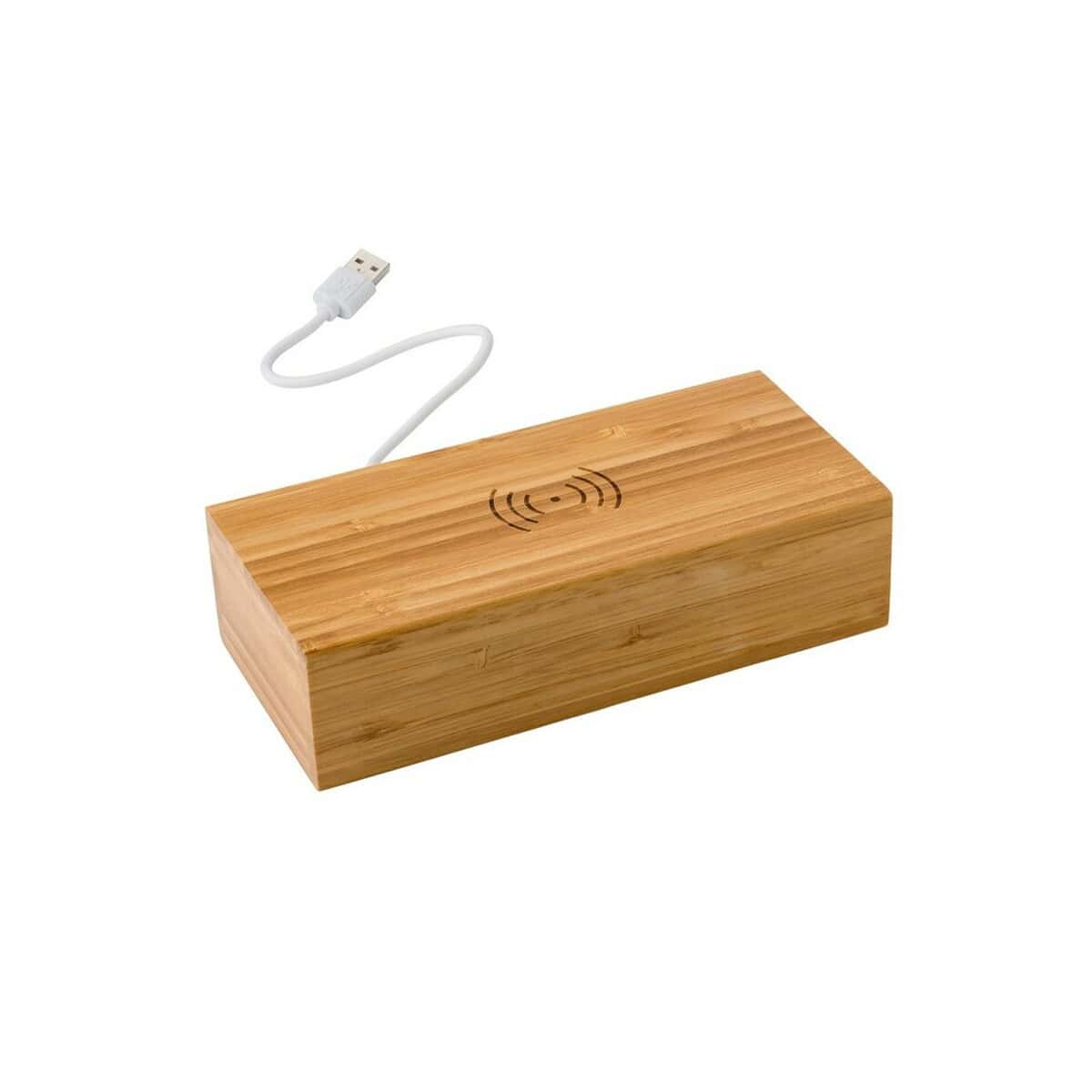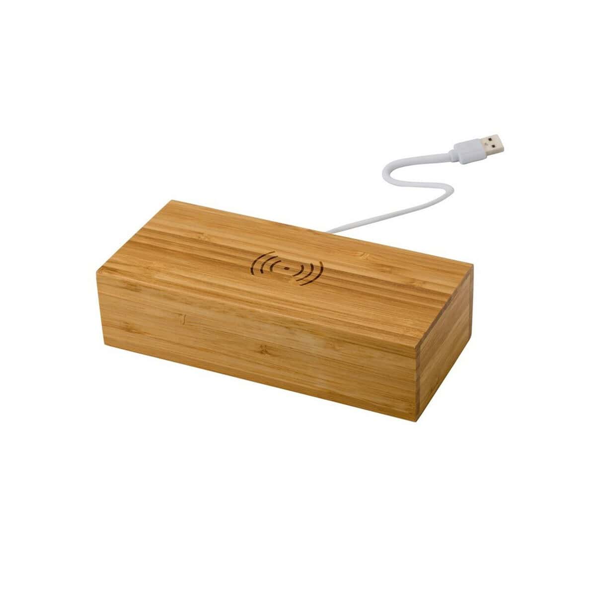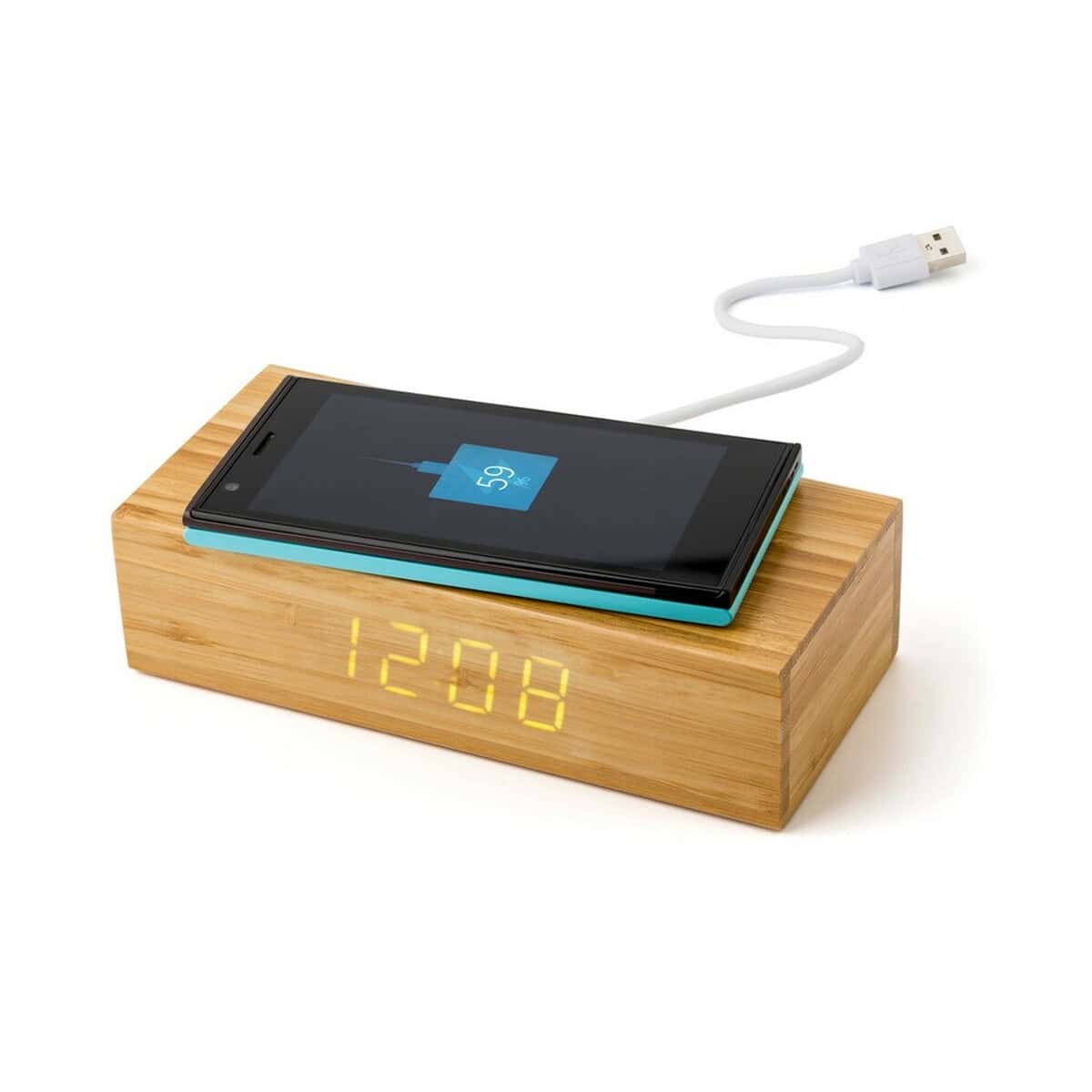 Bambusowa ładowarka bezprzewodowa 5W, zegar