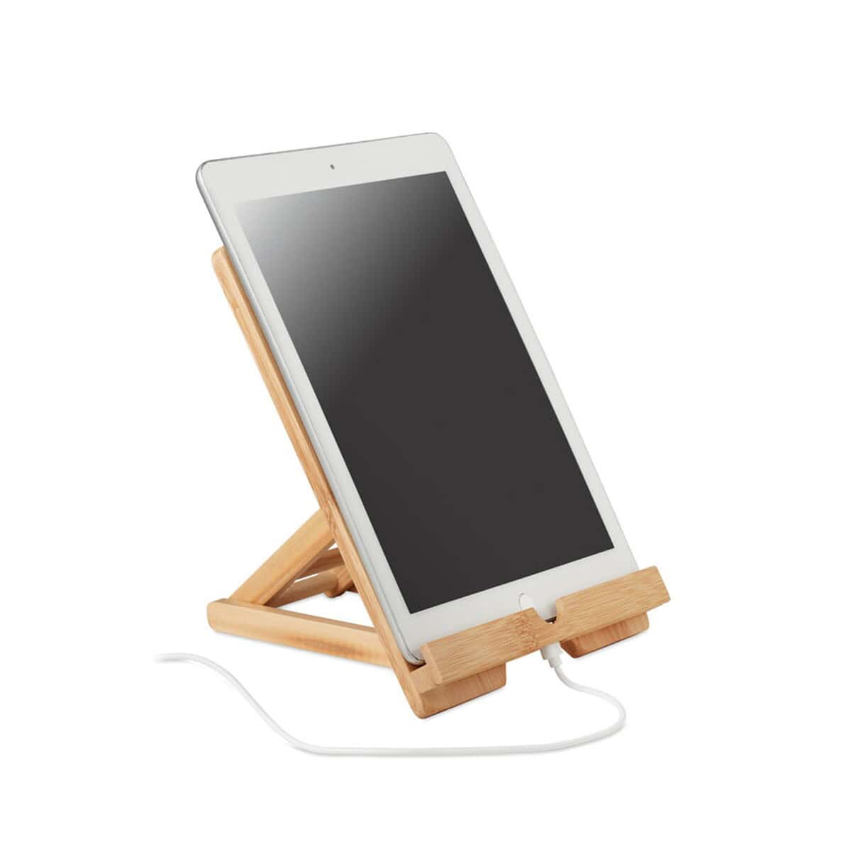 Bambusowa podstawka do tabletu TUANUI to znakomity wybór dla wszystkich, którzy chcą prezentować swoje urządzenia mobilne w stylowy, a zarazem ekologiczny sposób. Dzięki niej Twój tablet lub smartfon zyska stabilne oparcie zarówno w biurze, jak i w domu, a przy tym stanie się wyeksponowanym miejscem pod logo czy efektowny nadruk. Ponadczasowa, ciepła barwa naturalnego drewna sprawia, że produkt świetnie wpisuje się w aktualne trendy eko, podkreślając wizerunek odpowiedzialnej marki 😊.
