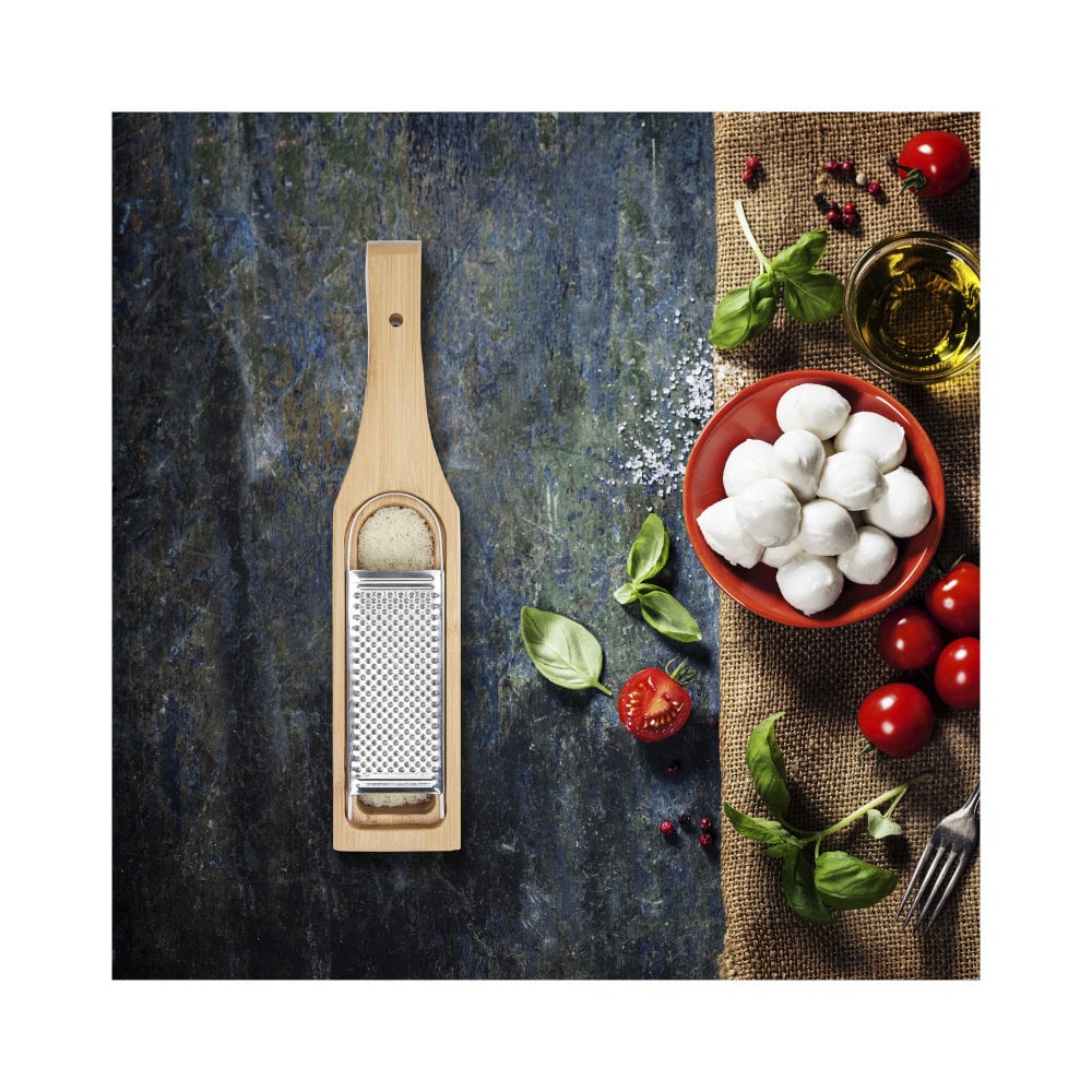 Tarca do sera z bambusa jest praktycznym i trwałym rozwiązaniem do uzyskania idealnie zetrzonych serów. Użyty bambus jest pozyskiwany i produkowany w sposób przyjazny dla środowiska, co pozwala cieszyć się zdrowe, bezpieczne i etyczne potrawy. Z tej poręcznej tarki możesz łatwo zetrzeć parmezan lub cheddar do twoich ulubionych dań z makaronu, zachowując doskonały smak i konsystencję. Niezależnie od tego, czy szykujesz wykwintne przystawki czy zwykłe śniadanie, tarca do sera jest niezbędnym narzędziem w twojej kuchni.