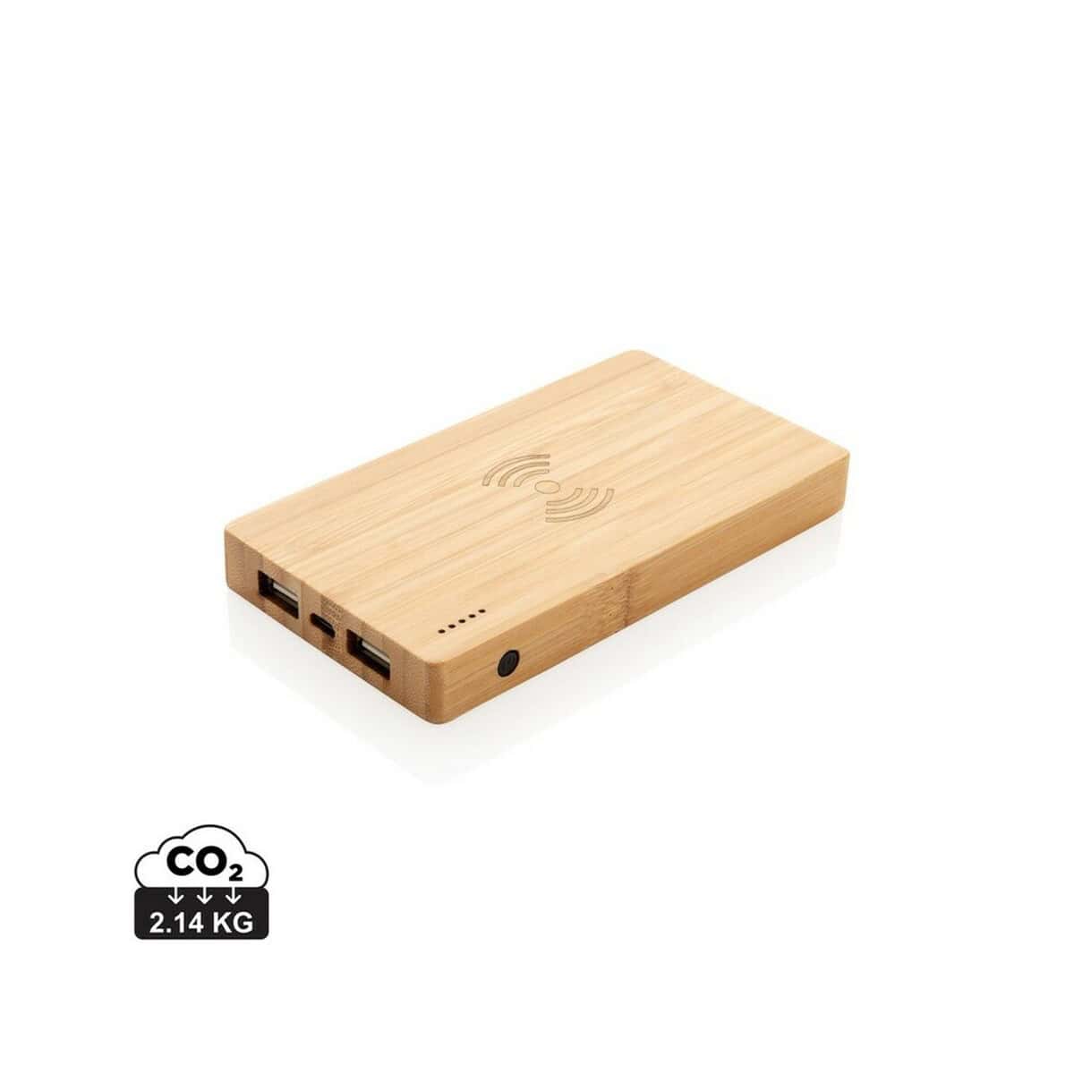 Bambusowy, bezprzewodowy power bank 4000 mAh