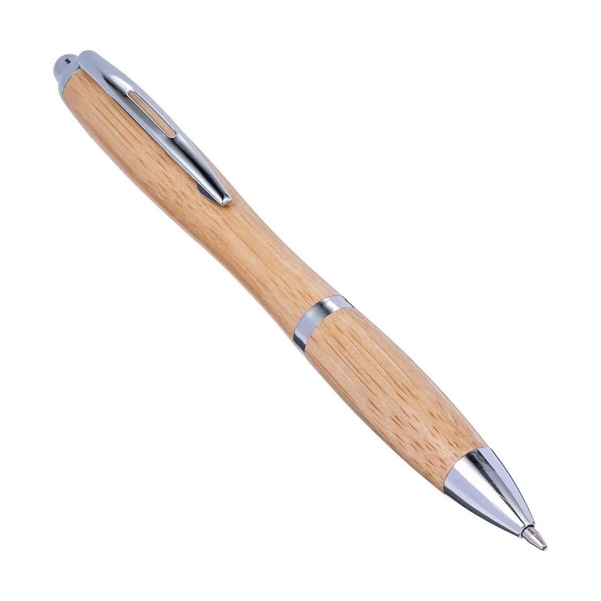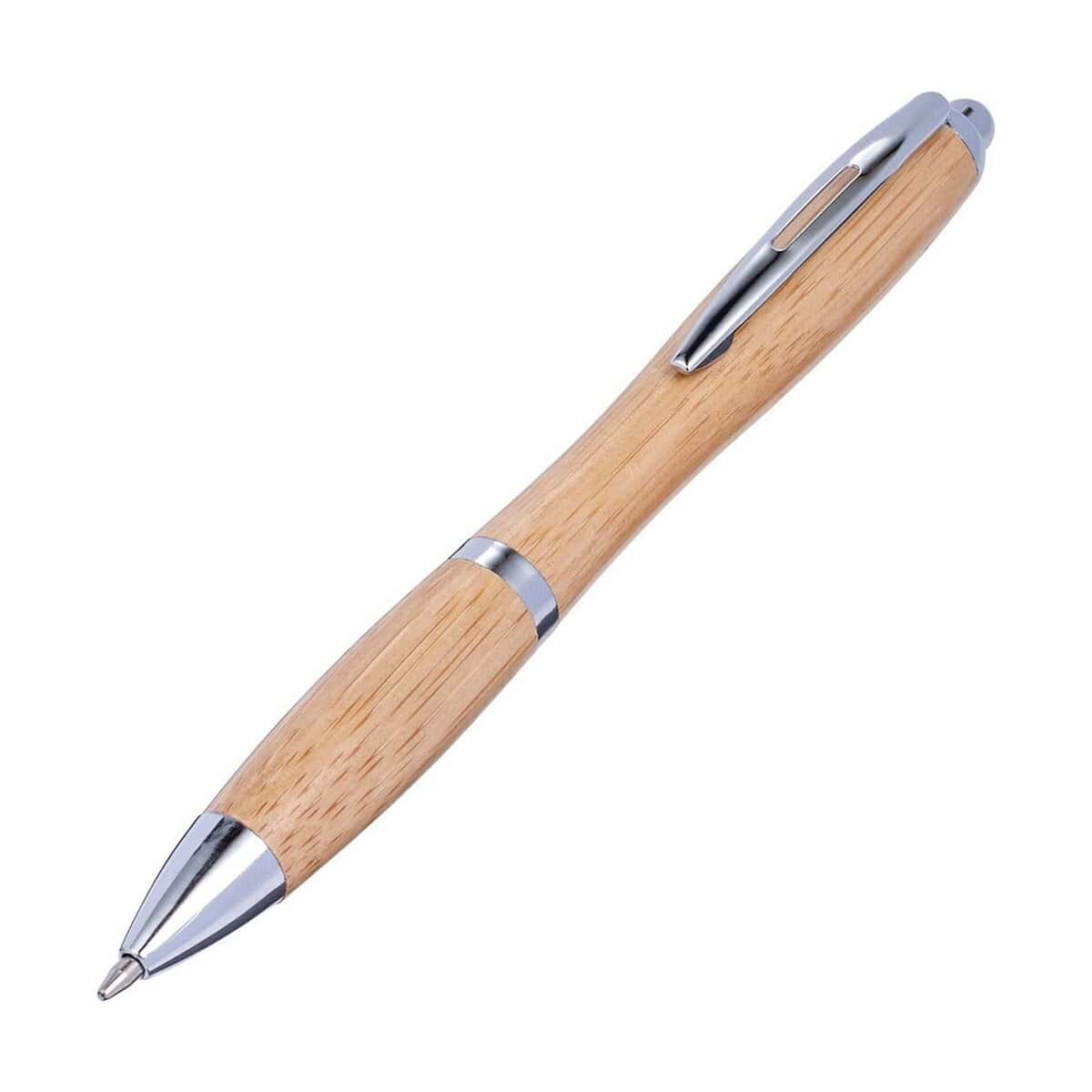 Materiał: bambus gwarantuje lekkość i wytrzymałość, a przy tym jest w pełni biodegradowalny, co czyni ten długopis perfekcyjnym wyborem dla firm wspierających zrównoważony rozwój. Dzięki wymiarom Wymiary: Ø1,2 x 14,2 cm długopis wygodnie leży w dłoni, a jego ergonomiczny kształt zapewnia komfort nawet podczas długiego pisania. Naturalny Kolor: drewniany doskonale komponuje się z wieloma paletami barw, ułatwiając dopasowanie do identyfikacji wizualnej przedsiębiorstwa.