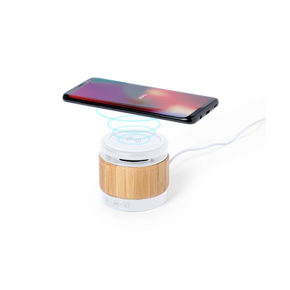 Bambusowy głośnik bezprzewodowy 3W, ładowarka bezprzewodowa 5W to niezwykle funkcjonalny, a zarazem stylowy gadżet, który łączy w sobie moc dźwięku i wygodę indukcyjnego ładowania. Dzięki kompaktowym wymiarom Ø7,4 x 6,8 cm oraz zastosowaniu naturalnego bambusa i trwałego ABS-u prezentuje się nowocześnie i ekologicznie. Wbudowana bateria 400 mAh, moduł BT 5.0 o zasięgu do 10 m oraz głośnik o mocy 3 W sprawiają, że muzyka brzmi czysto zarówno w biurze, jak i w plenerze. Równocześnie bezprzewodowa ładowarka 5 W zasili każdy smartfon z funkcją Qi – wystarczy położyć urządzenie na górnej powierzchni, by energia zaczęła płynąć 🙂.