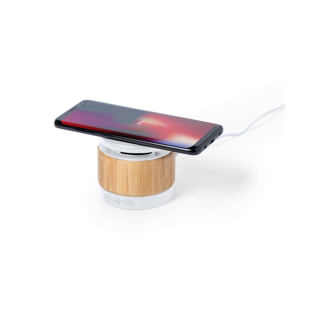 Bambusowy głośnik bezprzewodowy 3W, ładowarka bezprzewodowa 5W