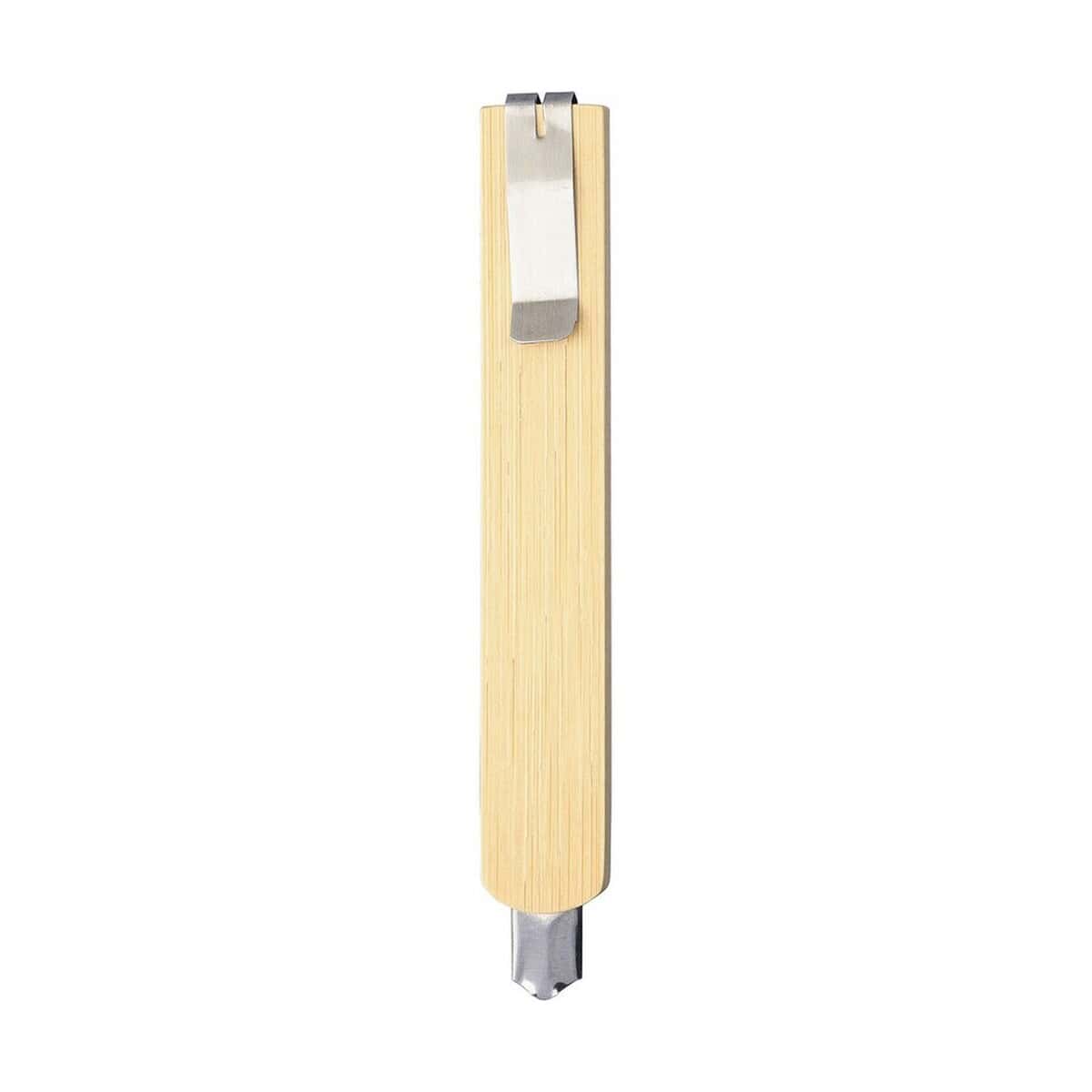 Bambusowy nóż do tapet to ekologiczny, a zarazem niezwykle praktyczny gadżet stworzony z myślą o precyzyjnym cięciu papieru, folii czy kartonu. Trzonek z naturalnego bambusa o wymiarach 13 × 1,8 × 1,4 cm pewnie leży w dłoni, a ostrze ze stali nierdzewnej gwarantuje długotrwałą ostrość. Ważący zaledwie 14 g nóż jest lekki, dzięki czemu praca nie męczy nadgarstka, a sprytny klips pozwala bezpiecznie chować ostrze, gdy narzędzie nie jest używane.