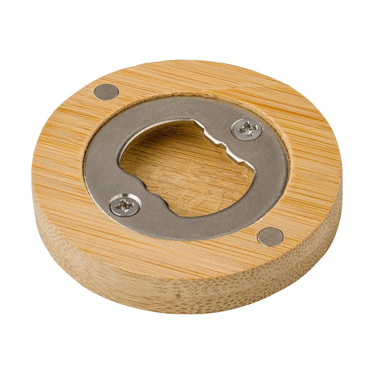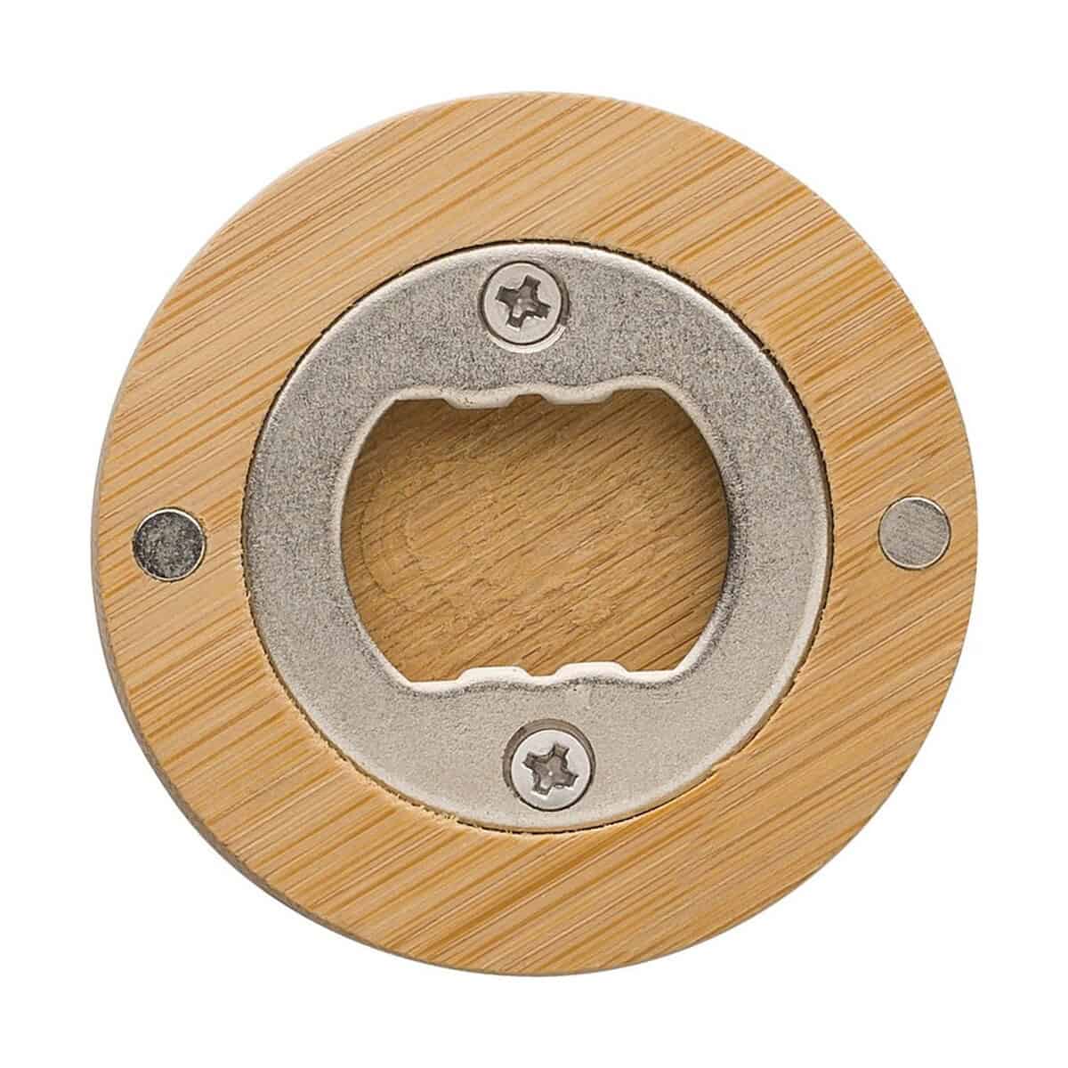 Wyprodukowany z przyjaznego środowisku bambusa i metalu, Bambusowy otwieracz do butelek wyróżnia się dwiema mocnymi magnesami, które stabilnie przytwierdzają go do lodówki, regału czy zmywarki, a jednocześnie chronią powierzchnię przed zarysowaniami – to detal, który klienci docenią od pierwszego użycia. Dzięki wymiarom Ø6 cm urządzenie mieści się w kieszeni fartucha barmańskiego, a także w kompaktowej torbie event managera. Solidny, metalowy mechanizm gwarantuje wieloletnią trwałość, co czyni produkt reklamowym nośnikiem Twojej marki na setki wydarzeń.