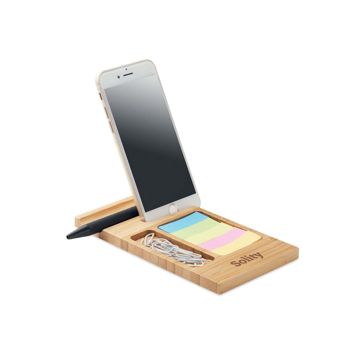 Personalizacja za pomocą Twojego logo sprawi, że ten produkt przemieni się w praktyczny upominek reklamowy, budujący pozytywny wizerunek marki. Świetnie sprawdzi się w kampaniach firm z branży technologicznej, finansowej, coachingowej, ekologicznej czy turystycznej – wszędzie tam, gdzie liczy się nowoczesność i troska o naturę. Dzięki miejscu na karteczki stojak idealnie pasuje także do hoteli oraz przestrzeni coworkingowych, gdzie goście potrzebują szybkich notatek i stabilnego podparcia dla telefonu.