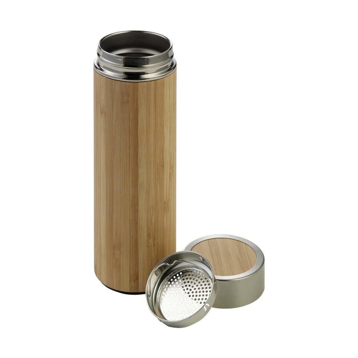 Sercem produktu jest wyjmowane sitko zatrzymujące fusy, dzięki któremu liściasta herbata lub aromatyczna kawa nie przedostanie się do kubka. Takie rozwiązanie czyni model Bambusowy termos 420 ml, posiada sitko zatrzymujące fusy znakomitą propozycją dla koneserów naparów na świeżo mielonych ziarnach i ziołach.
