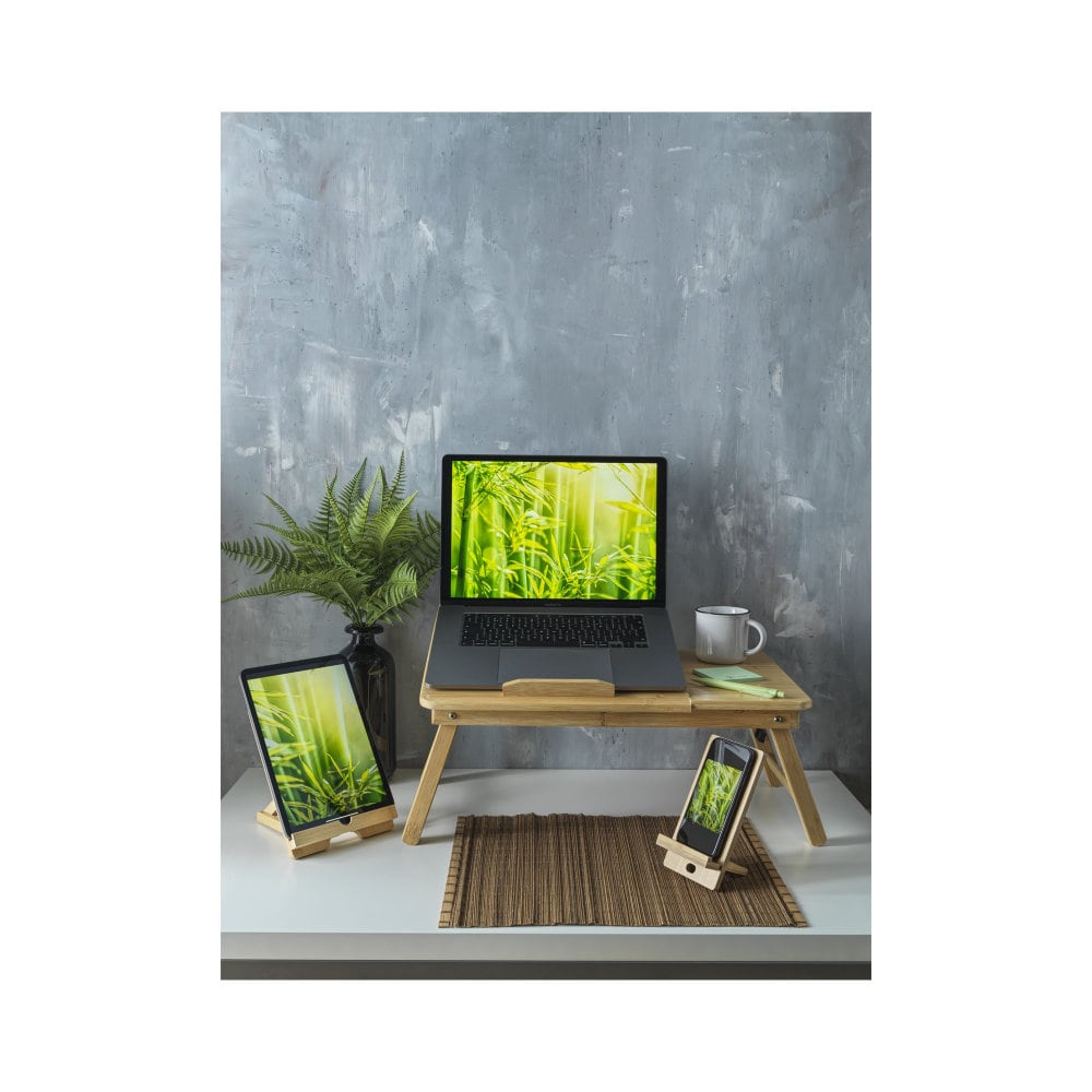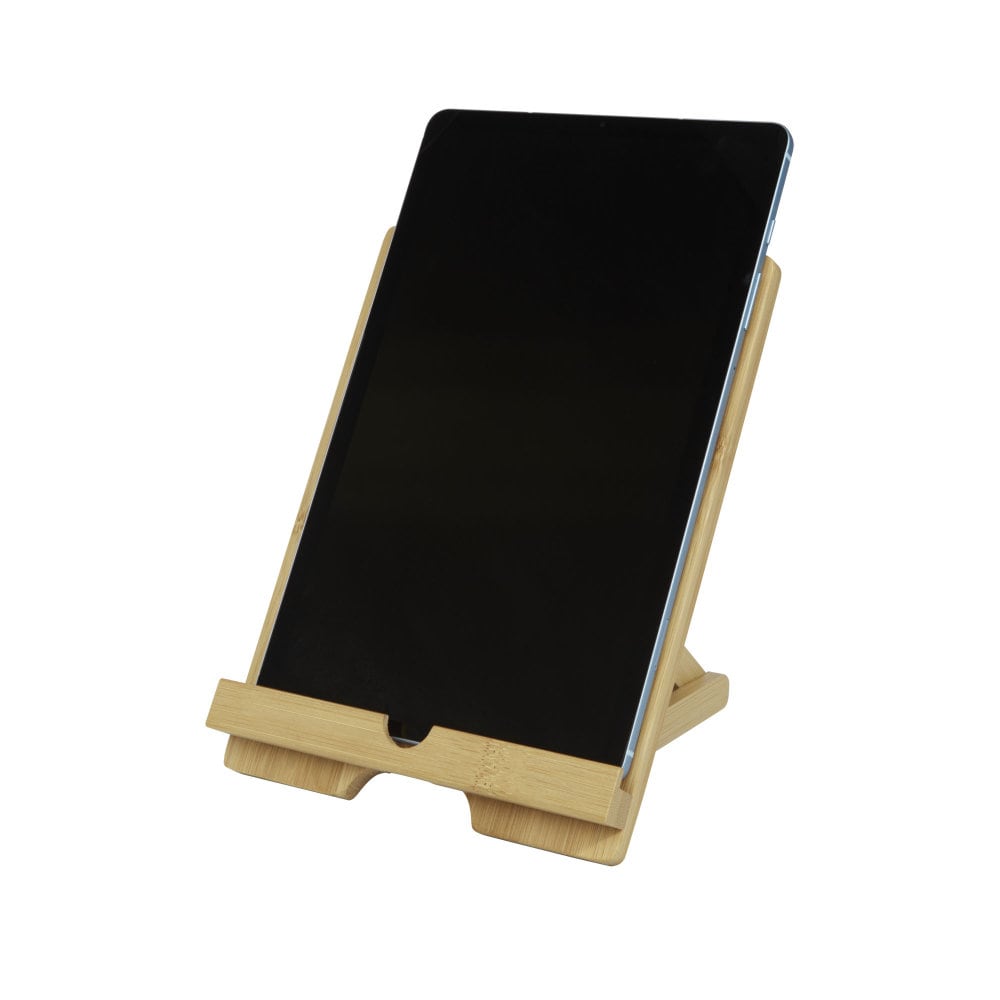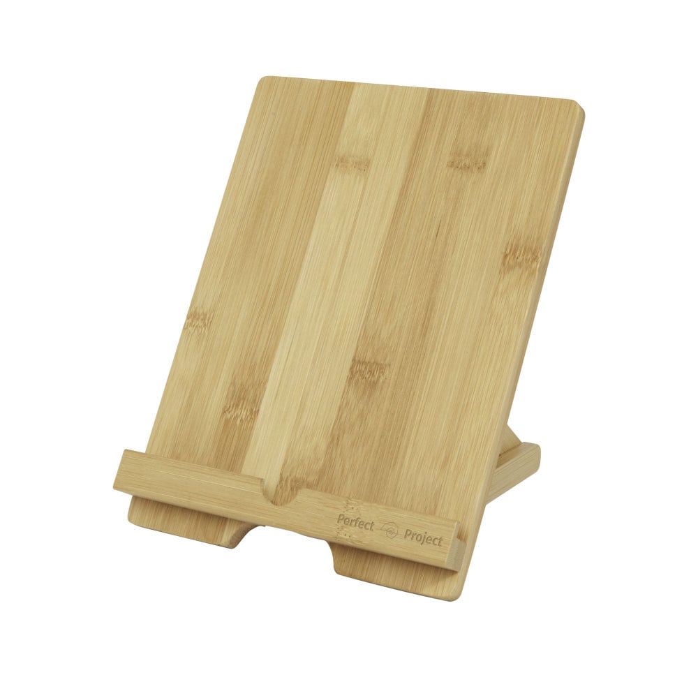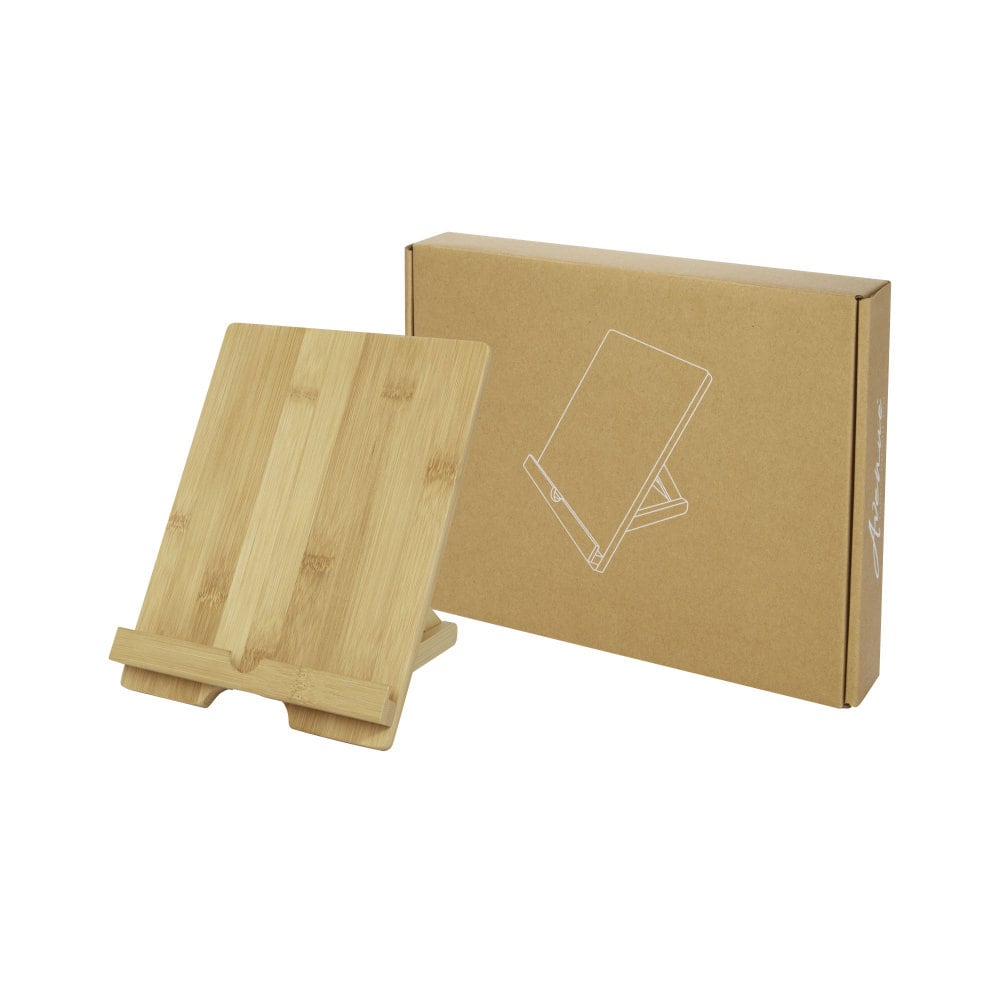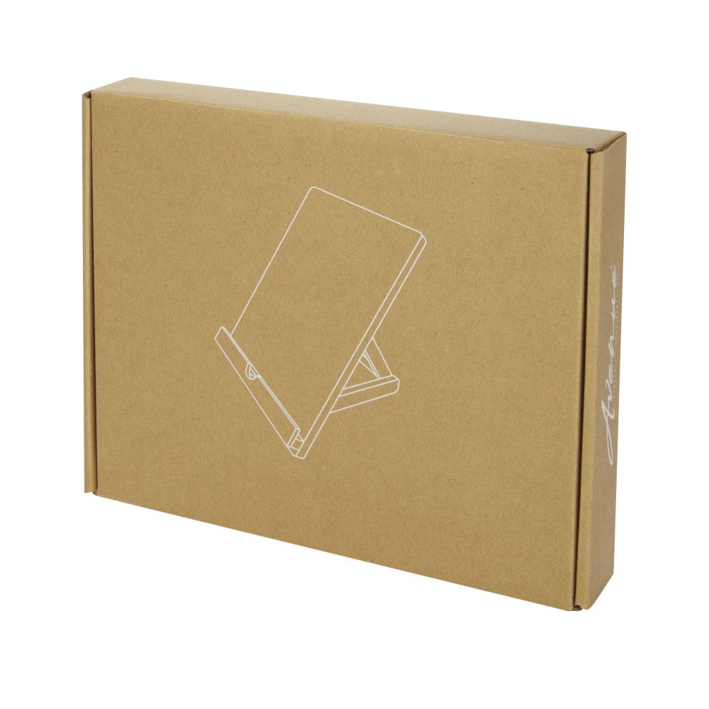 Ten uchwyt na tablet to niezwykłe akcesorium dla posiadaczy tabletów i telefonów komórkowych. Wykonany z bambusa, który pochodzi ze zrównoważonych, ekologicznych i społecznie odpowiedzialnych źródeł, pasuje do prawie wszystkich modeli tabletów i telefonów. Użytkownicy mogą regulować kąt widzenia, co daje idealną platformę do pracy, oglądania filmów lub czytania przepisów podczas gotowania. Uchwyt ma wymiary 16,5 x 16 x 22 cm i jest dostarczany z instrukcją obsługi oraz zapakowany w pudełko upominkowe z recyklingowanego kartonu o wymiarach 28,5 x 22 x 4,5 cm.