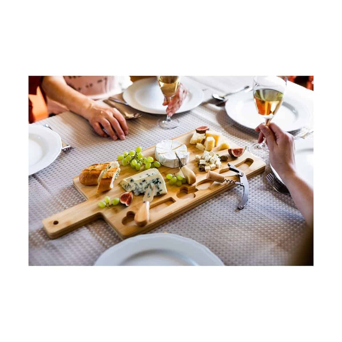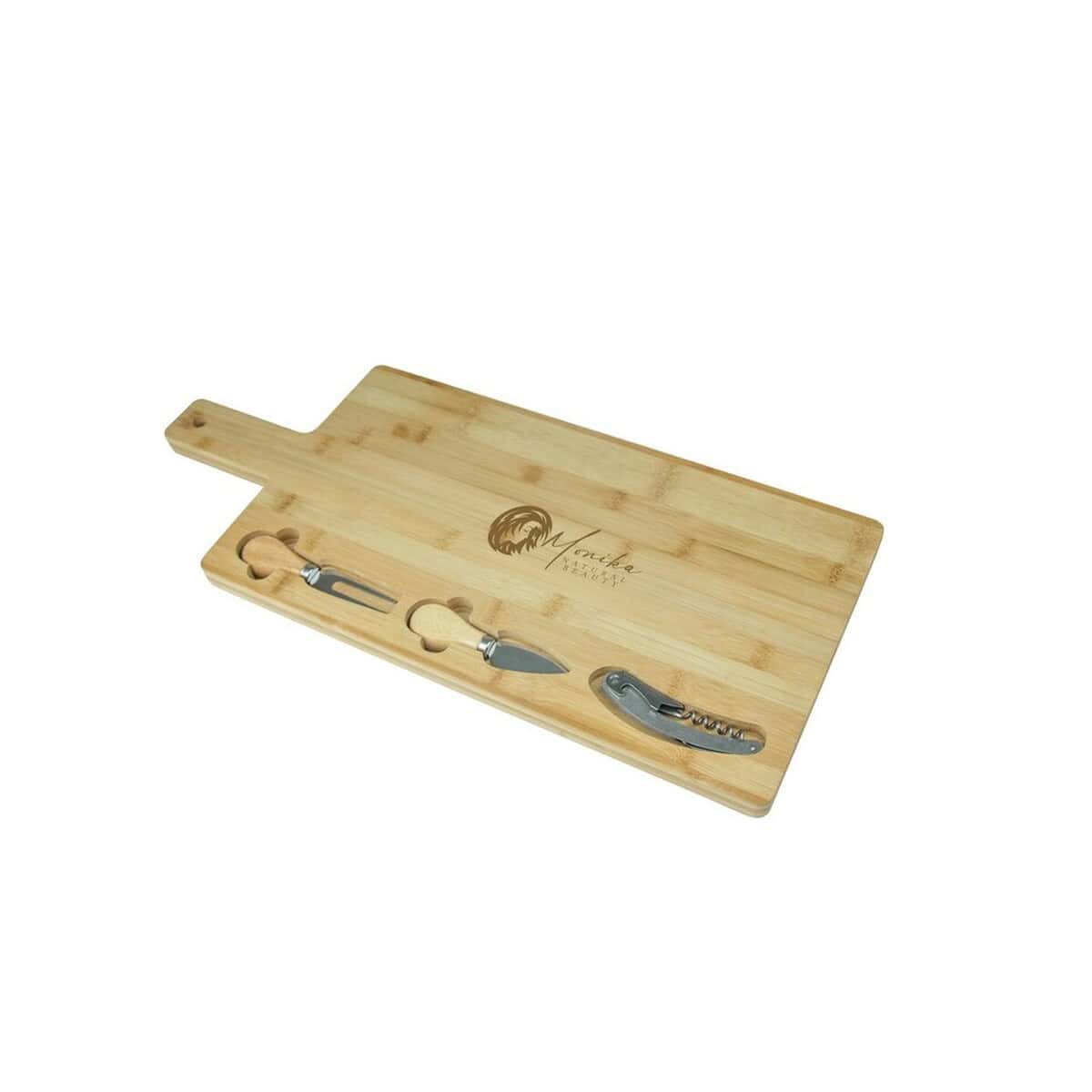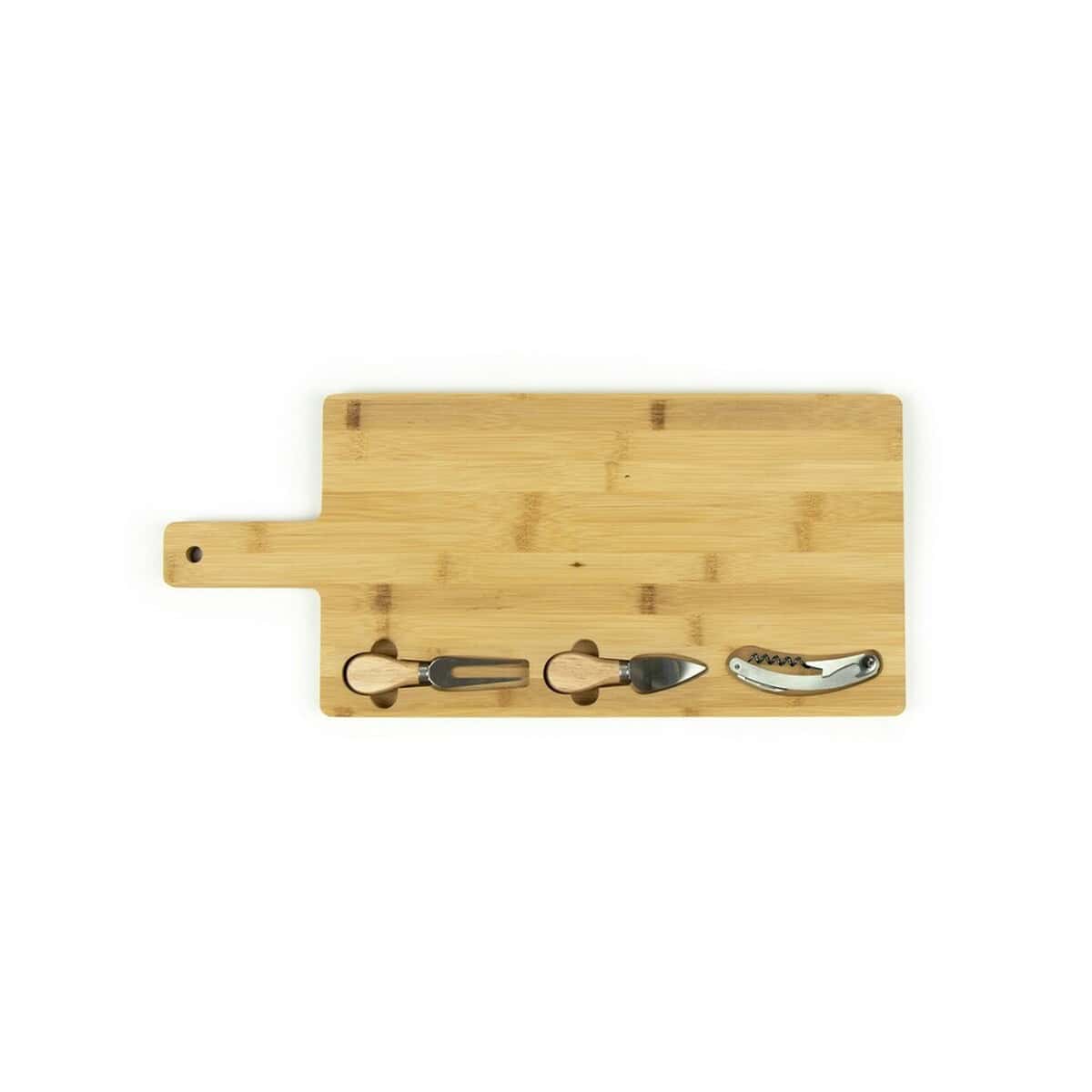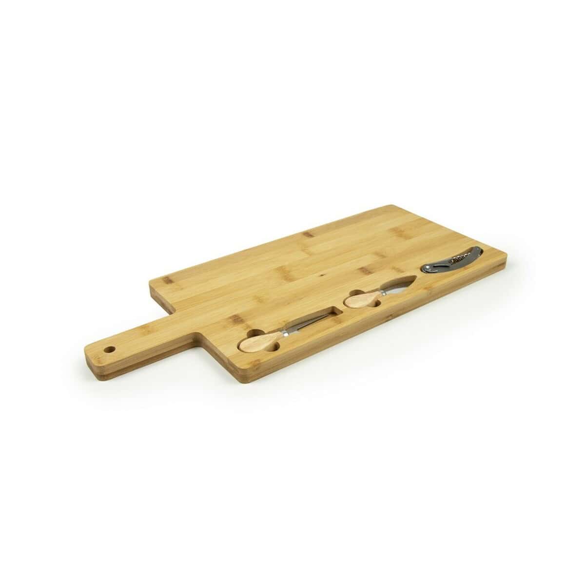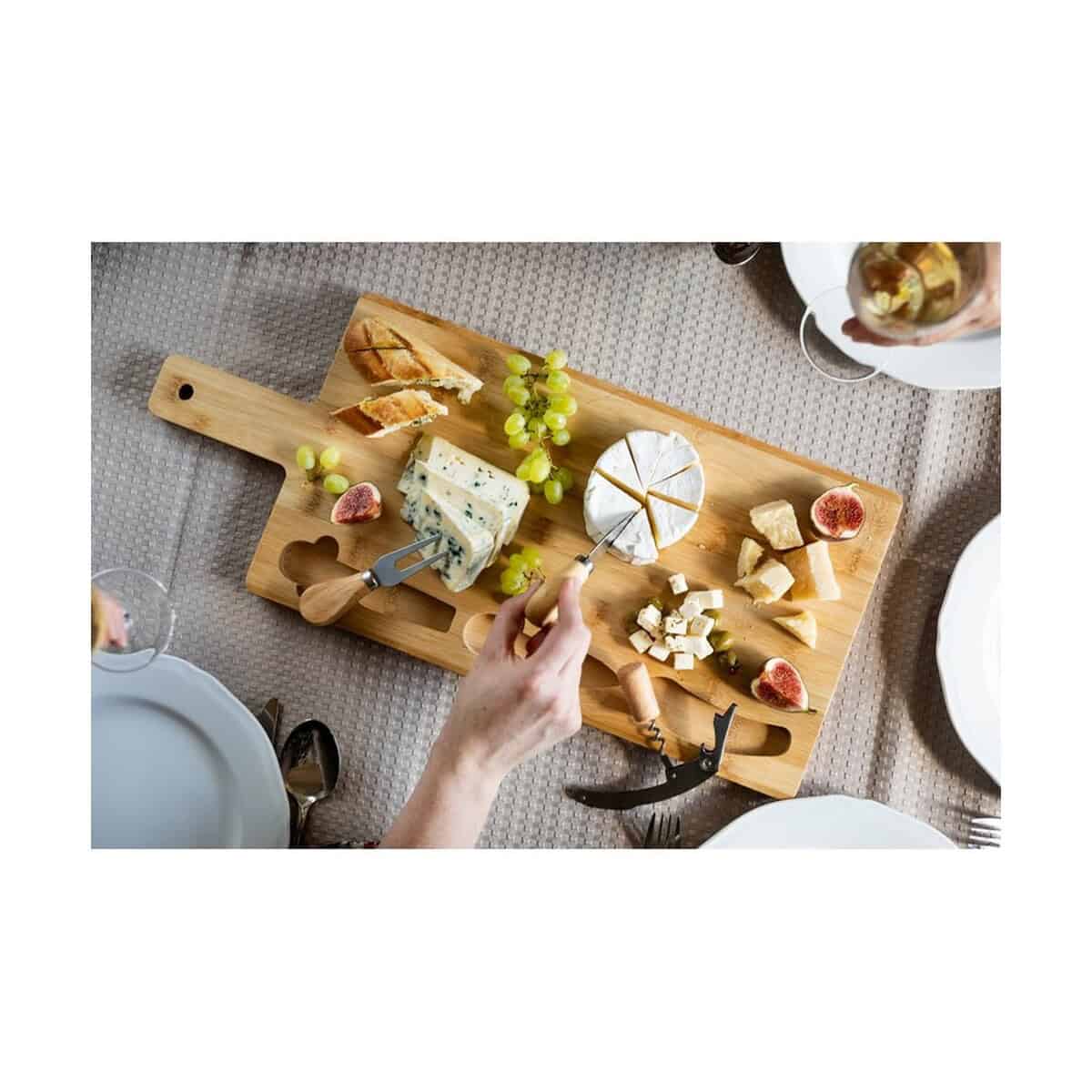 Bambusowy zestaw do sera | Tamsin to wyrafinowany, a zarazem praktyczny gadżet, który wprowadzi nutę elegancji do każdego spotkania przy stole 😊. W skład kompletu wchodzi bambusowa deska, widelec i nóż do sera oraz poręczny nóż kelnerski, dzięki czemu już od pierwszego użycia poczujesz, że masz w rękach produkt stworzony z myślą o profesjonalnym serwowaniu. Deska wykonana z trwałego bambusa jest przyjazna dla środowiska i odporna na wilgoć, natomiast akcesoria ze stali zapewniają długowieczność i łatwość czyszczenia.