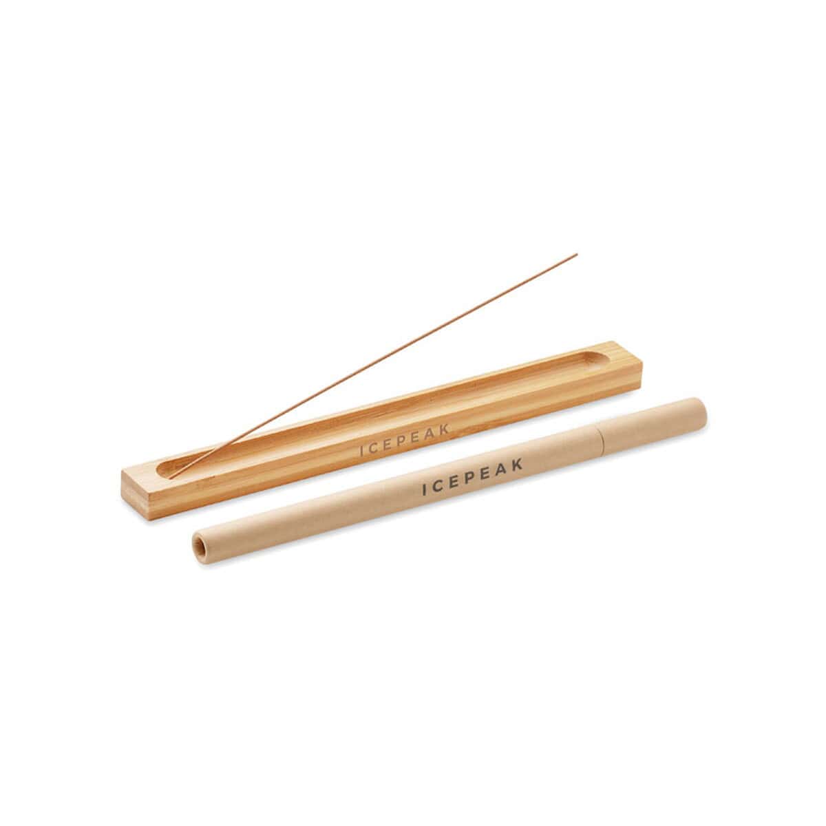 Bambusowy zestaw kadzideł XIANG to znakomity sposób, aby wprowadzić do codziennego życia nutę egzotycznego aromatu oraz subtelny akcent natury. Zapach drewna sandałowego unoszący się z 10 smukłych lasek koi zmysły, ułatwia relaks i buduje atmosferę sprzyjającą koncentracji 😊. Całość prezentuje się w eleganckim, naturalnym pudełku wykonanym z bambusa, którego usłojenie i odcień mogą delikatnie się różnić, podkreślając unikalność każdego egzemplarza. To perfekcyjny, estetyczny gadżet dekoracyjny i użytkowy, który przyciąga spojrzenia, a jednocześnie pozwala dyskretnie wyeksponować firmowe logo.