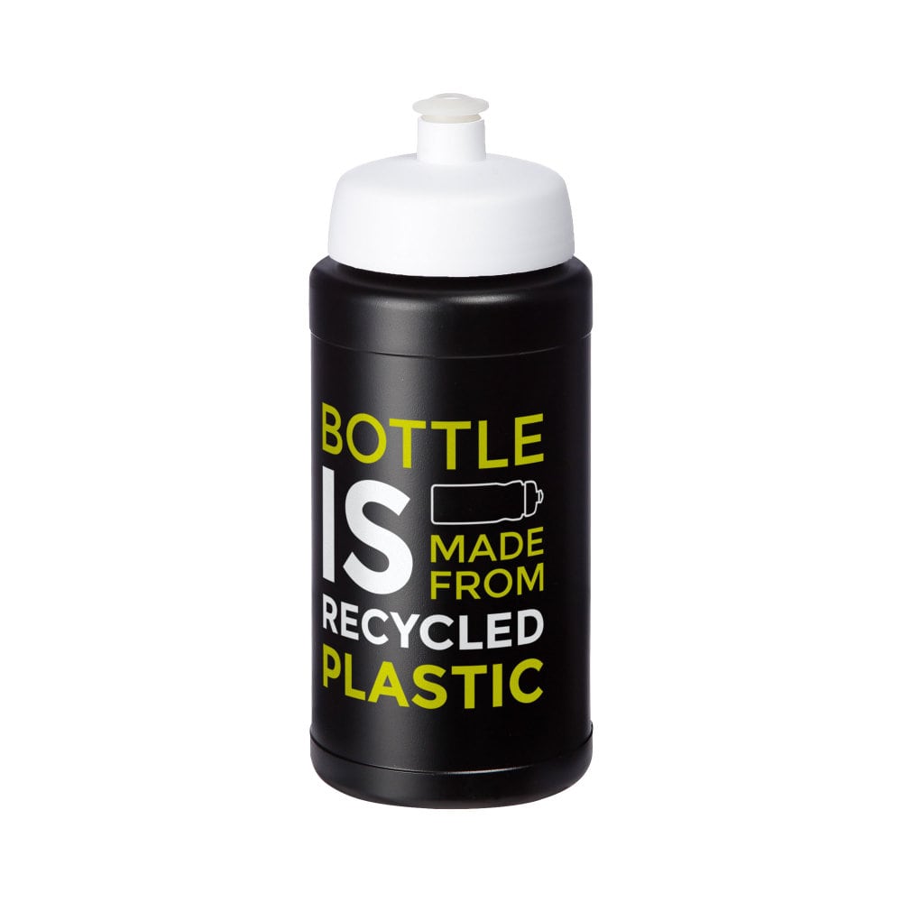 Jednościenna butelka sportowa wykonana z tworzywa sztucznego pochodzącego z recyklingu to doskonały wybór dla osób aktywnych. Pokrywa zapobiega wylewaniu się płynów z dzióbkiem typu push-pull umożliwiając łatwe picie. Pojemność 500 ml pozwala cieszyć się ulubionym napojem przez dłuższy czas. Odcień czerni może być różny w zależności od rodzaju użytego materiału poddanego recyklingowi. Wyprodukowano w Wielkiej Brytanii, co gwarantuje wysoką jakość produktu.