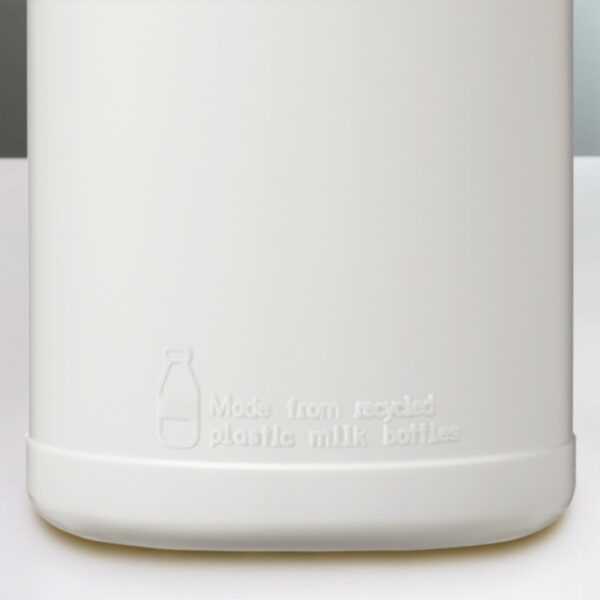 Ten jednościenny bidon przekształca jednorazowe plastikowe butelki na mleko w artykuły wielokrotnego użytku. Butelka ma odporną na rozlanie pokrywkę z zamknięciem typu flip i ma pojemność 500 ml. Ze względu na charakter tworzyw sztucznych pochodzących z recyklingu odcienie kolorów mogą się nieznacznie różnić i mogą występować kolorowe plamki. Wyprodukowano w Wielkiej Brytanii.