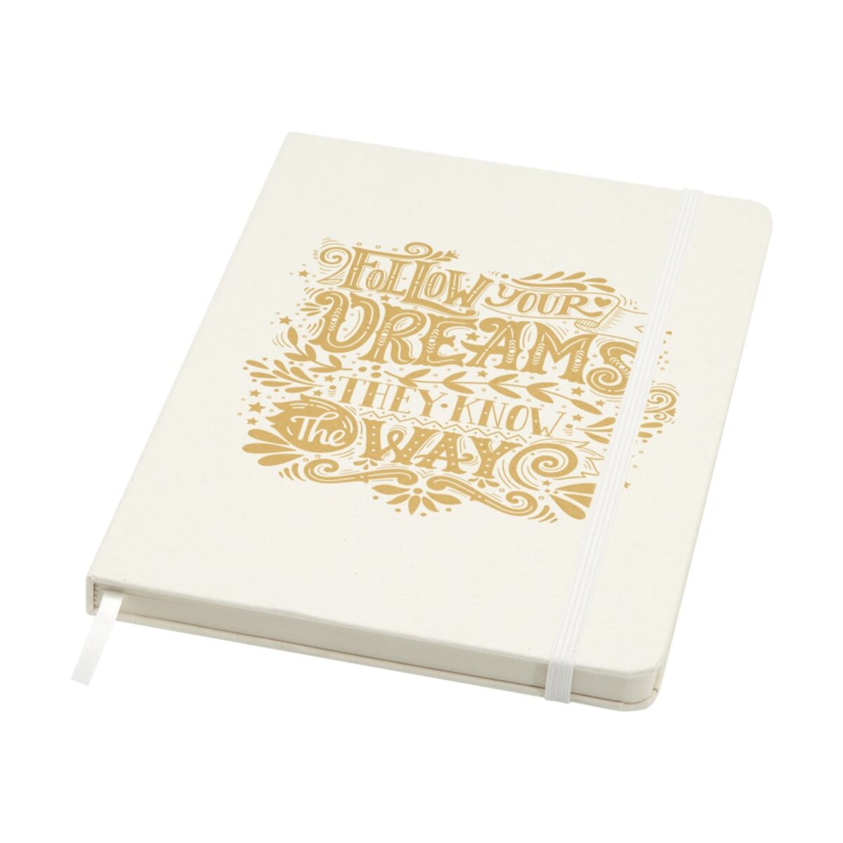 Notatnik jest dostępny w czterech kolorach HEX: 000000 (czarny), 2F4F8F (niebieski), E41F26 (czerwony), FFFFFF (biały), co umożliwia dopasowanie go do stylu każdej marki lub preferencji osobistych. Może być znakowany metodą sitodruku, co czyni go doskonałym narzędziem marketingowym 🌿. Dzięki możliwości dodania logo firmy, notatnik staje się znakomitą formą reklamy – nie tylko praktyczną, ale także trwałą i estetyczną.