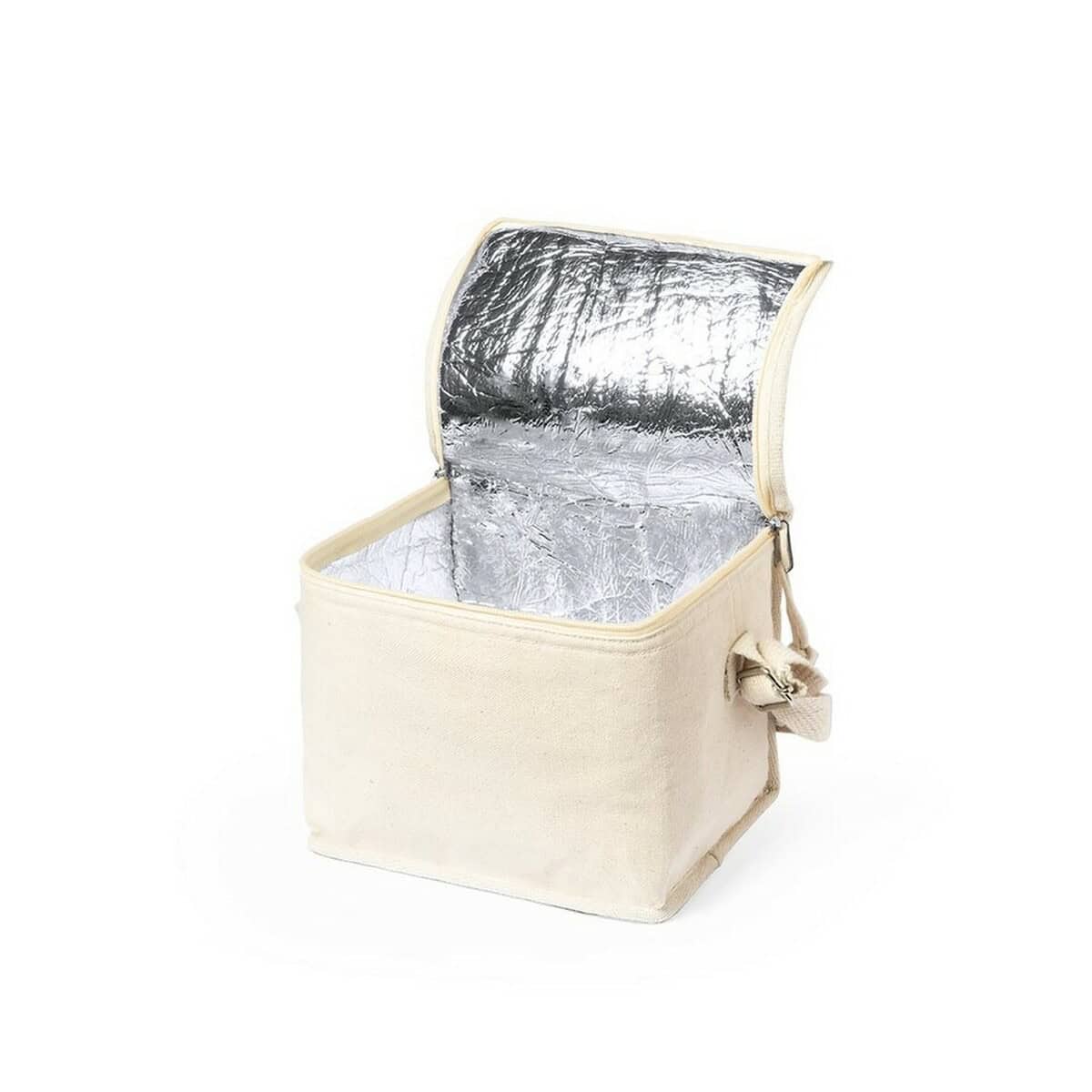 Kluczowe cechy produktu: kompaktowe wymiary 22 × 17 × 17 cm, aluminiowe wnętrze utrzymujące temperaturę, przegroda główna na zamek błyskawiczny, wygodny regulowany pasek pozwalający nosić torbę w dłoni lub na ramieniu. Naturalny beż podkreśla ekologiczny charakter, a duża, gładka powierzchnia frontowa czeka na Twój logo albo efektowny nadruk. W ten sposób zamienisz torbę w skuteczny nośnik przekazu reklamowego.