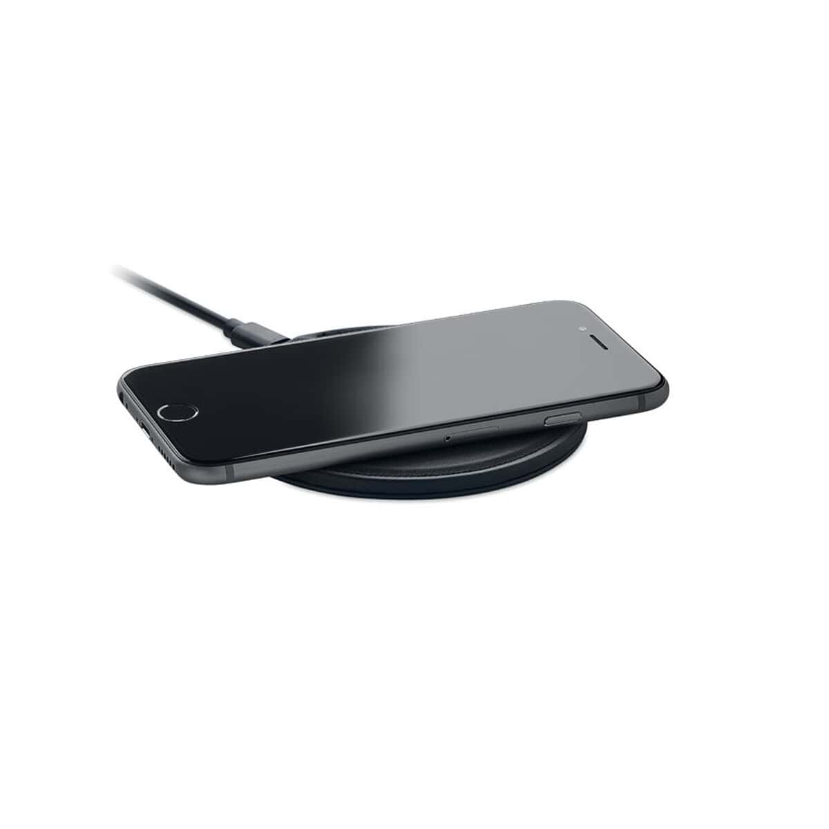 Bezprzew. ładowarka 15W z rec. ALFA to nowoczesny, ekologiczny i wyjątkowo funkcjonalny gadżet, który doskonale sprawdzi się jako nośnik logo oraz elegancki upominek reklamowy 🙂. Wykonana w 58 % z materiałów z odzysku (40 % poliester oraz 18 % PU), podkreśla troskę o środowisko, co czyni ją atrakcyjnym dodatkiem do kampanii CSR. Jej kompaktowe wymiary ø10 × 0,6 cm i lekkość 0,090 kg sprawiają, że można ją bez trudu przenosić w torbie czy plecaku, a stylowy czarny kolor pasuje do każdego biurka.