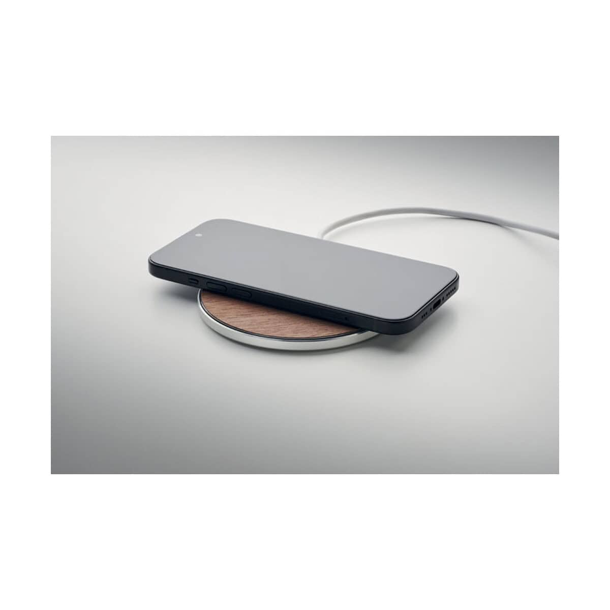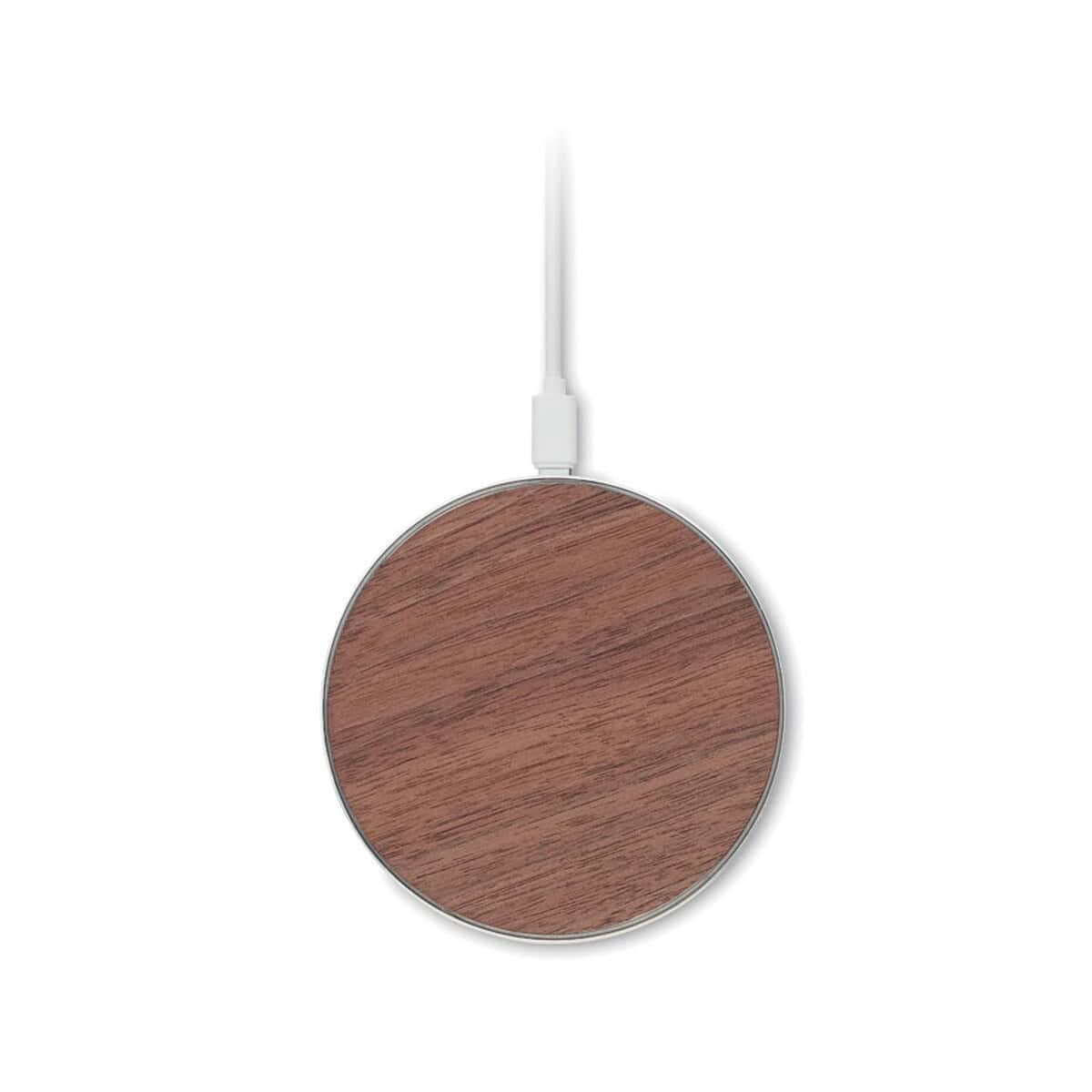 Produkt jest lekki i poręczny: Wymiary: ø10 × 0,7 cm, Waga: 0,052 kg. Wykonany z wysokiej jakości aluminium oraz naturalnego drewna w ciepłym, drewnianym kolorze, doskonale komponuje się z wystrojem biura, domowego gabinetu czy hotelowego lobby. Ładowarkę wystarczy podłączyć do portu USB-C, położyć telefon i… gotowe! 🔋