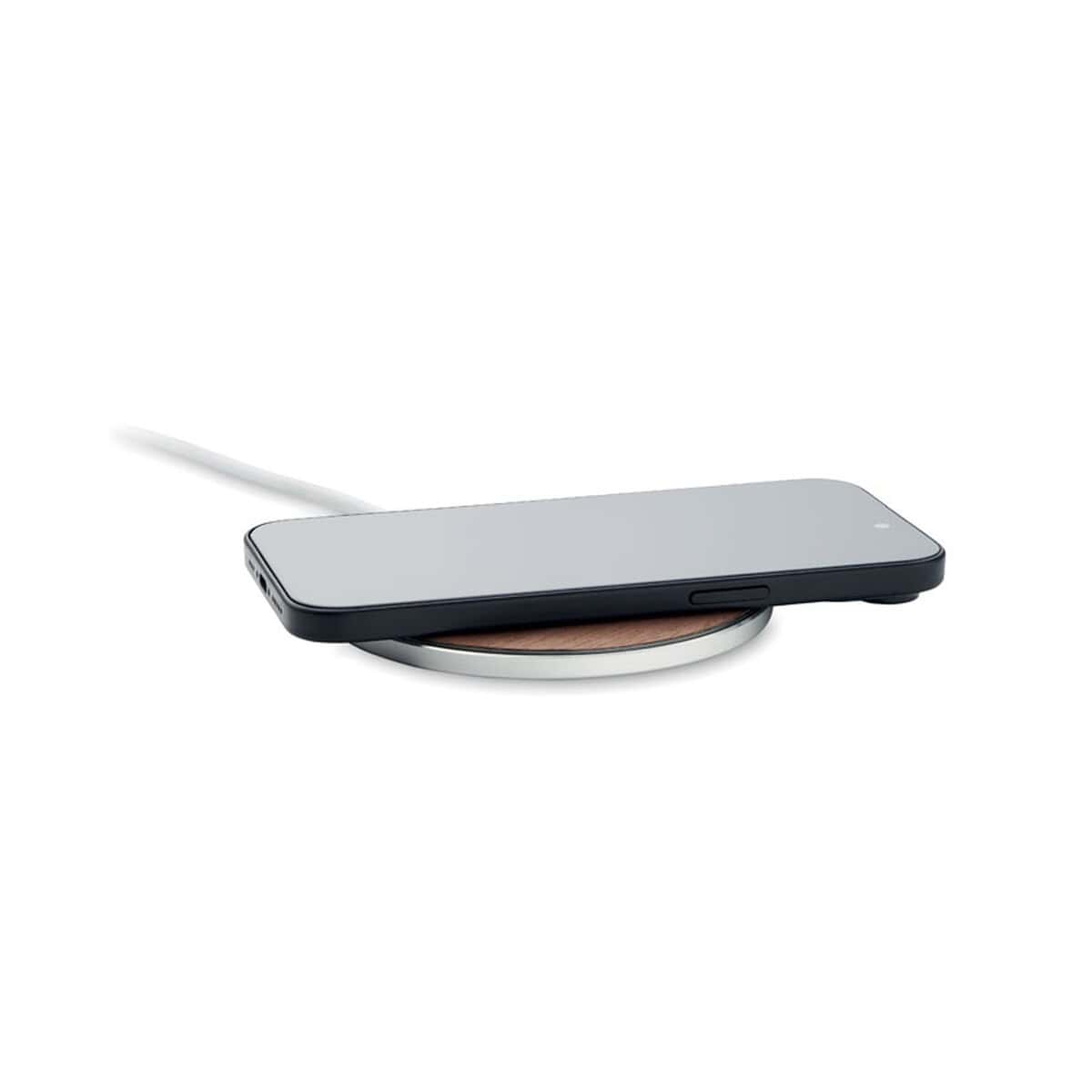 Bezprzewodowa ładowarka 15 W NEUZ to nowoczesny gadżet, który wyróżni się na biurku każdego miłośnika technologii i ekologii 😊. Aluminiowa obudowa pochodząca z recyklingu, subtelnie połączona z orzechowym akcentem, tworzy wyjątkowo stylową całość, która podkreśli prestiż Twojej marki. Na powierzchni ładowarki możemy umieścić wyraziste logo lub nadruk, dzięki czemu staje się ona praktycznym nośnikiem przekazu reklamowego dla Twojej firmy. Moc wyjściowa 15 W i kompatybilność z technologią Qi zapewniają szybkie oraz bezpieczne ładowanie najnowszych smartfonów Android i iPhone®.