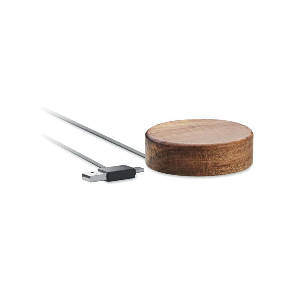 Bezprzewodowa ładowarka 15W ACALESS to znakomity, nowoczesny gadżet, który łączy w sobie naturę i technologię. Wykonana z eleganckiego drewna akacjowego o ciepłym, drewnianym kolorze, natychmiast przyciąga uwagę klientów i partnerów biznesowych. Jej kompaktowe wymiary ø7,3 × 2,1 cm oraz lekka waga 0,085 kg sprawiają, że bez trudu zmieści się na każdym biurku, stoliku kawowym czy w torbie służbowej. Moc wyjściowa DC 9V/1,67 A (15 W) zapewnia szybkie ładowanie wszystkich urządzeń kompatybilnych z Qi, w tym najnowszych smartfonów z Androidem i modeli iPhone® 8, X oraz nowszych. Dzięki zwijanemu kablowi USB, użytkownik zyskuje wygodę bez plączących się przewodów, a naturalne drewno podkreśla styl eko, tak ceniony w nowoczesnym biznesie 😊.