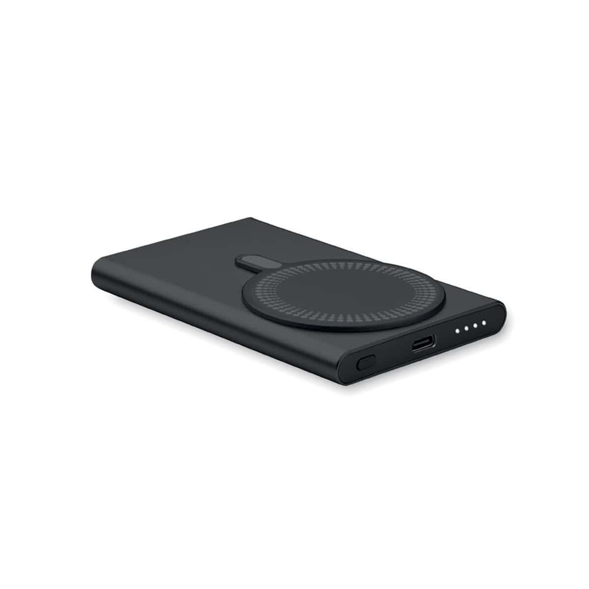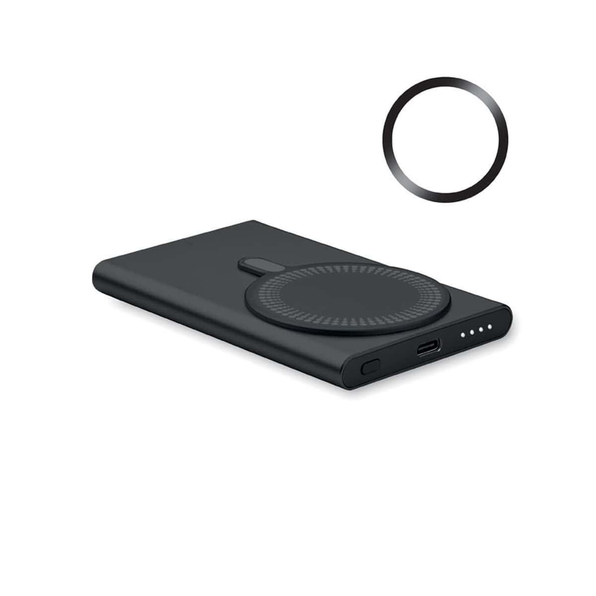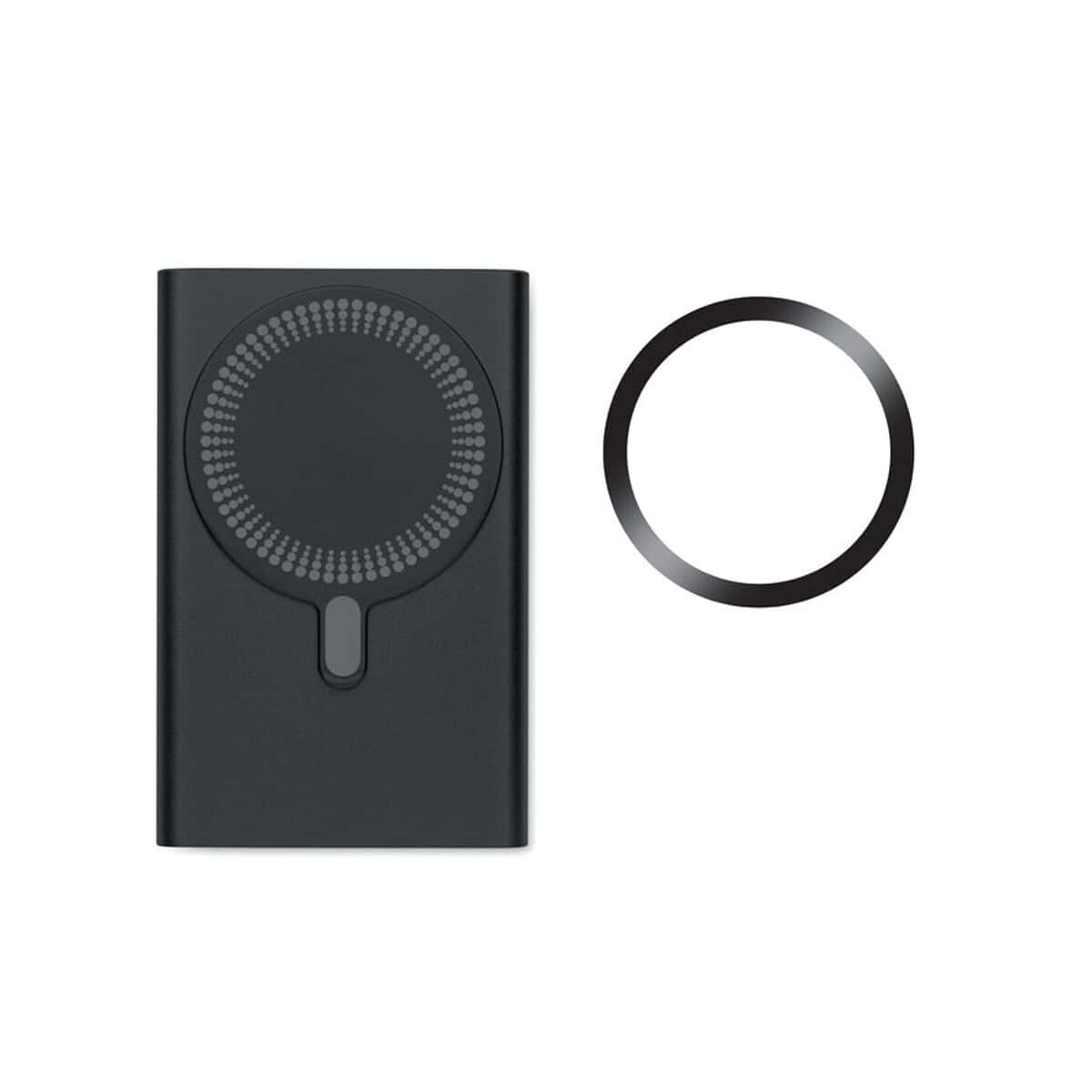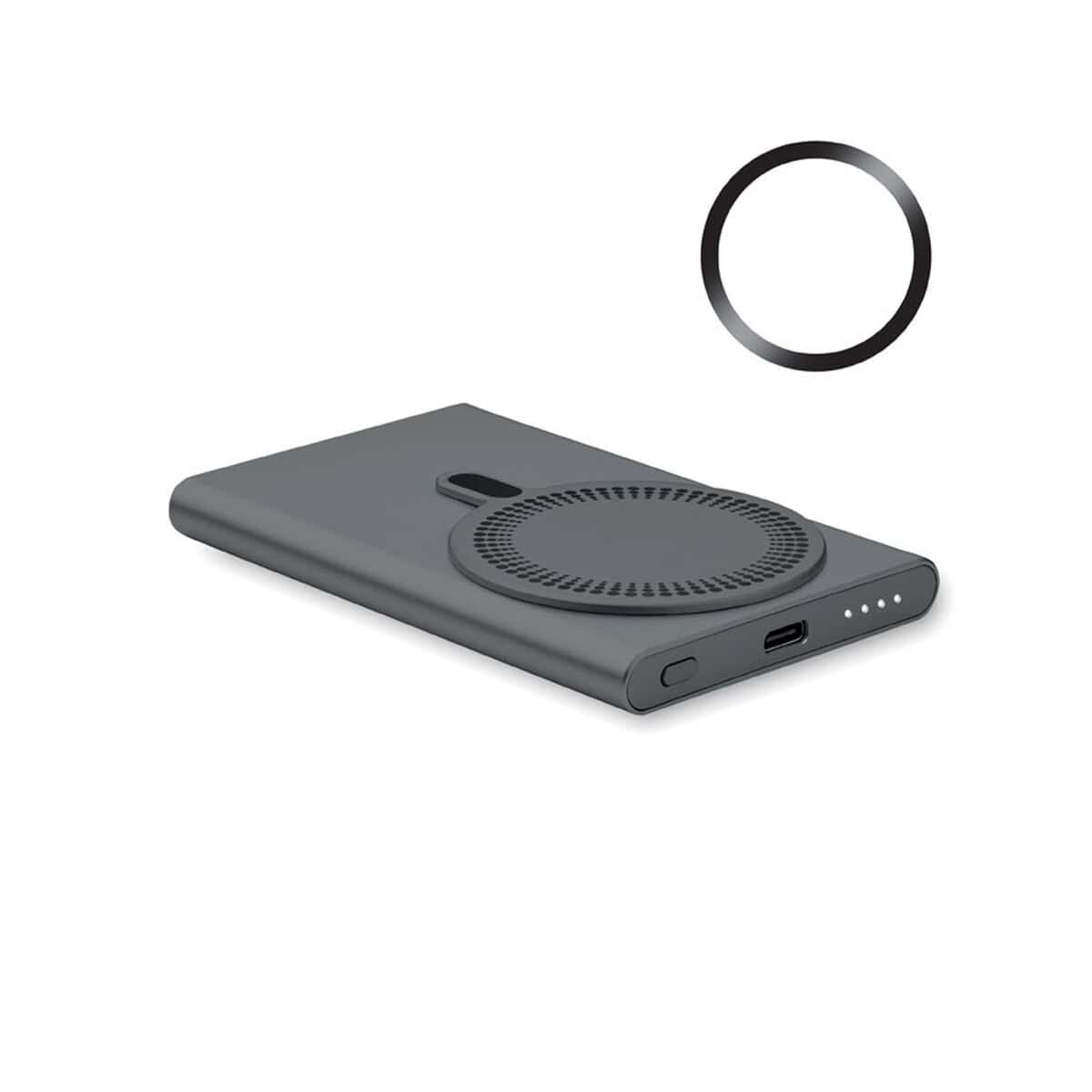 Cechy produktu: powerbank 5000 mAh, ładowanie bezprzewodowe 15 W, szybkie ładowanie 20 W, port Typ-C PD, wymiary 6,7 × 10,2 × 0,95 cm, waga 0,157 kg, obudowa z recyklingowanego aluminium, dostępność w sześciu kolorach, magnetyczny pierścień w komplecie. Zamów ten praktyczny, elegancki i ekologiczny drobiazg dla Twojej firmy i podaruj odbiorcom produkt, który każdego dnia będzie przypominać o Twojej marce.