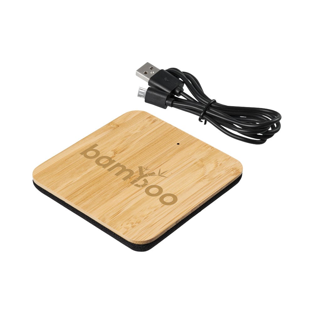 Bambusowa / materiałowa bezprzewodowa podkładka ładująca to ekologiczna opcja ładowania smartfonów bez użycia kabli. Wykonana z bambusa i bawełny ekologicznej, pozwala na ładowanie do 1A dla urządzeń kompatybilnych z funkcją bezprzewodowego ładowania. Jeżeli urządzenie nie obsługuje bezprzewodowego ładowania, wymagany jest zewnętrzny, bezprzewodowy odbiornik ładujący lub etui z odbiornikiem. Do zestawu dołączony jest kabel Micro USB. Podkładka ładująca to proste i wygodne rozwiązanie i jednocześnie wkład w dbanie o środowisko.