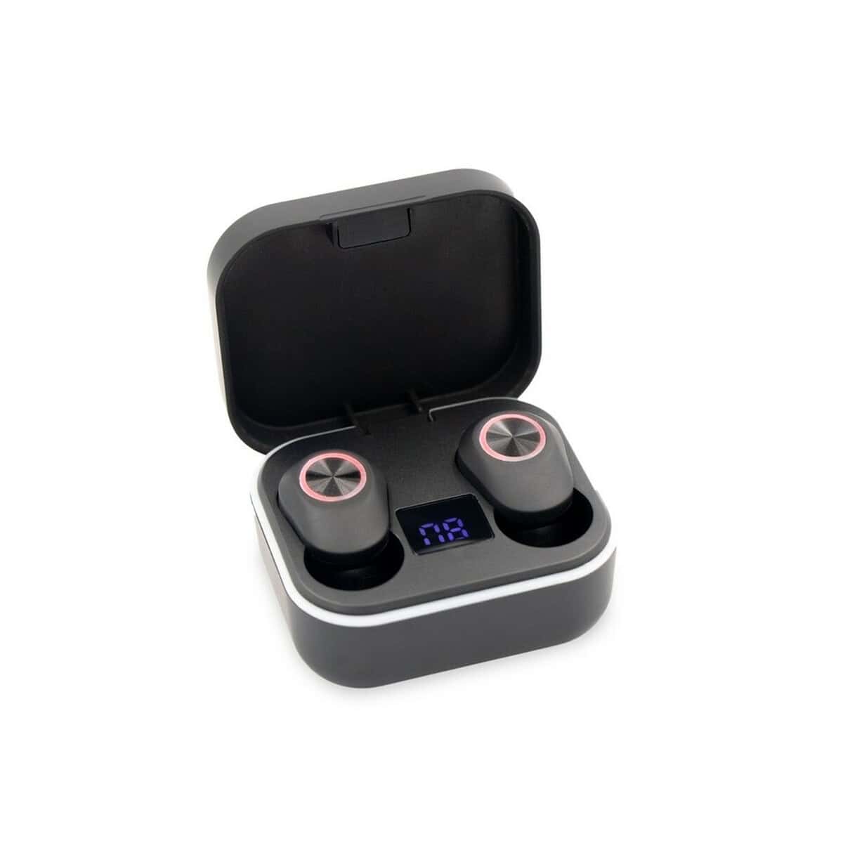Bezprzewodowe słuchawki douszne | Graham to nowoczesny gadżet, który podbije serca Twoich klientów i pracowników 🙂. Wykonane z wytrzymałego ABS, ważą zaledwie 35 g, a ich kompaktowe wymiary 5,5 × 4,5 × 3 cm sprawiają, że zmieszczą się w każdej kieszeni czy torebce. Etui ładujące o pojemności 300 mAh z cyfrowym wskaźnikiem naładowania pozwala cieszyć się muzyką przez ponad 2 h, a technologia BT 5.1 zapewnia stabilne połączenie do 10 m. Wbudowany mikrofon oraz funkcja odbierania połączeń zmienią słuchawki w przenośne biuro, a dołączony kabel USB-C przyspieszy ładowanie.