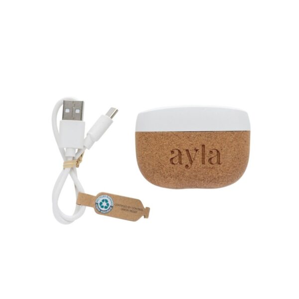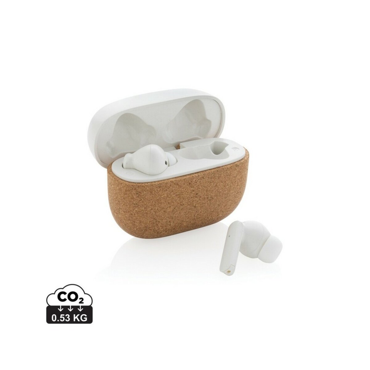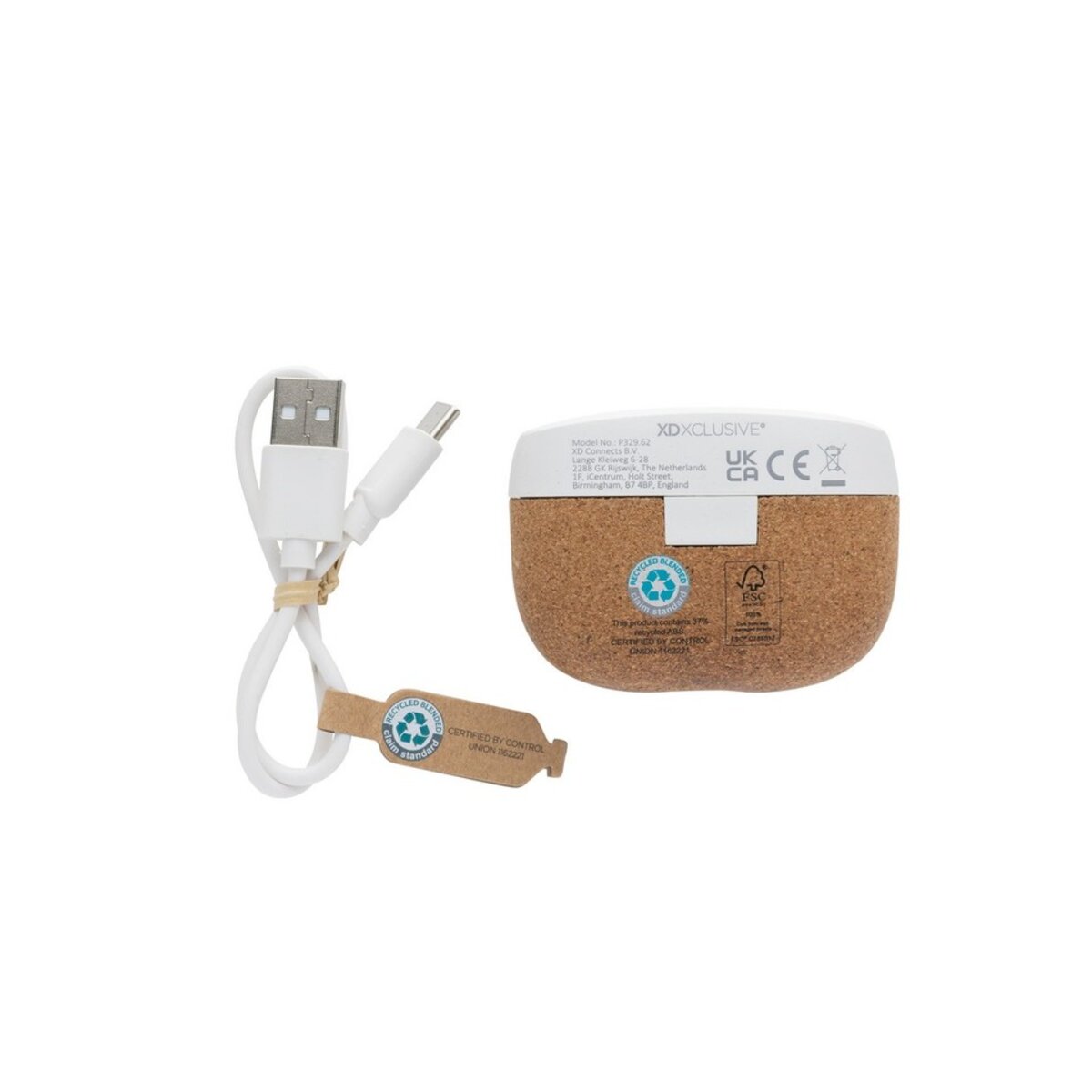 Bezprzewodowe słuchawki douszne Oregon TWS są wykonane z przyjaznych dla środowiska materiałów. Zastosowanie korka posiadającego certyfikat FSC® oraz ABS-u z recyklingu z certyfikatem RCS czyni te słuchawki wyborem odpowiedzialnym. To doskonałe rozwiązanie dla branży marketingowej jako gadżet elektroniczny z logo, idealne do promowania świadomości ekologicznej i odpowiedzialności społecznej wśród klientów i partnerów.🌿